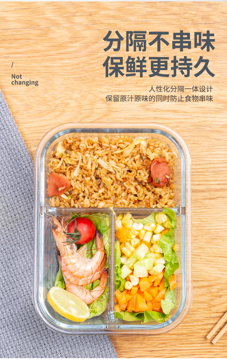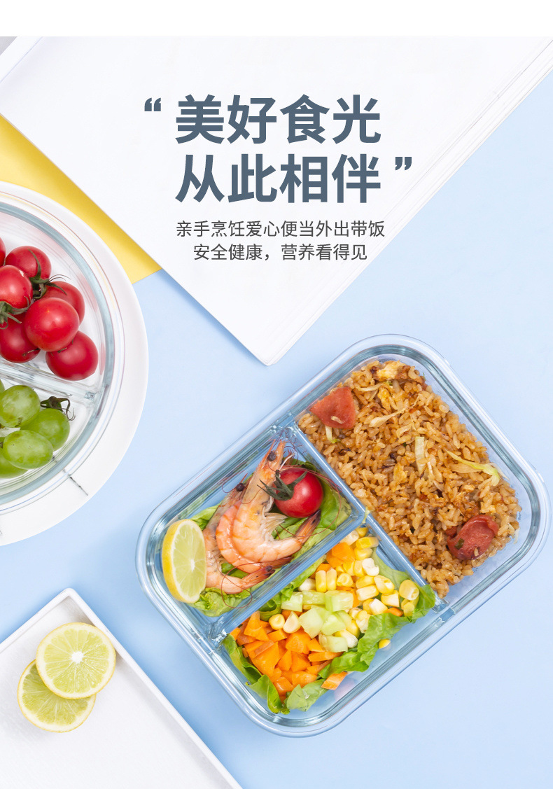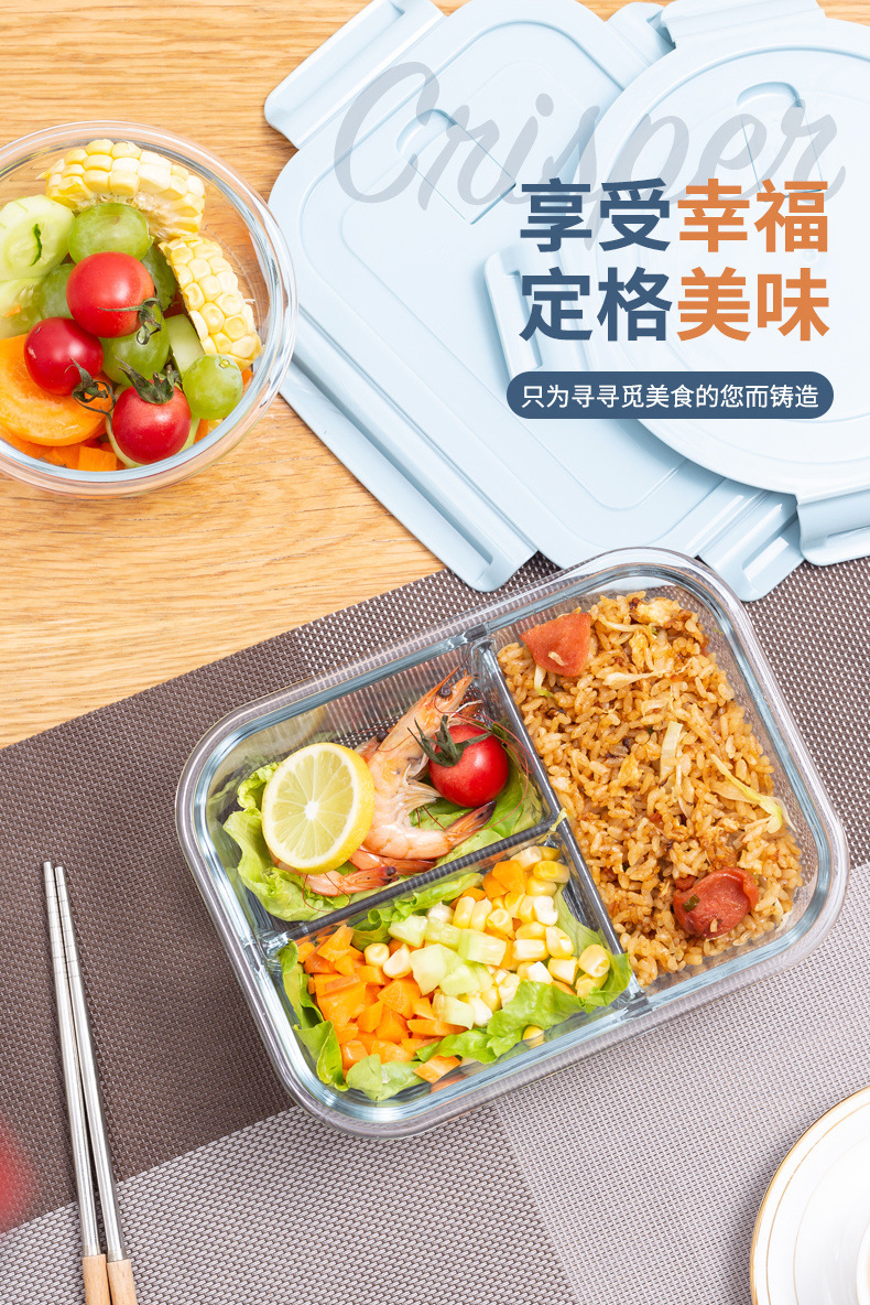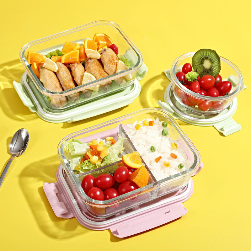 세트 직장인 도시락 분리형 과일 보존 상자를 위한 유리 도시락 전자 레인지 난방 특별 식사 상자
