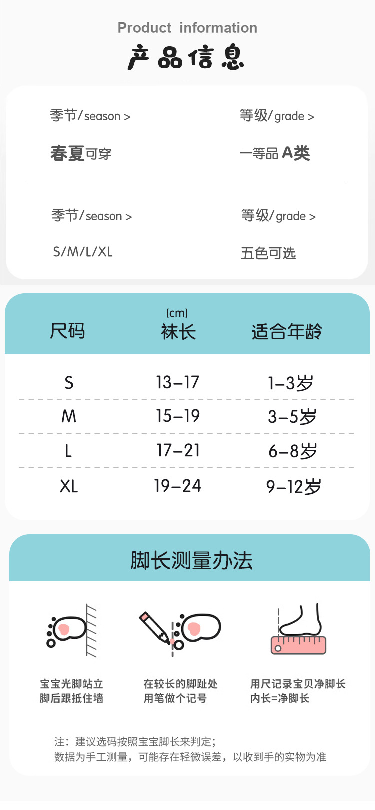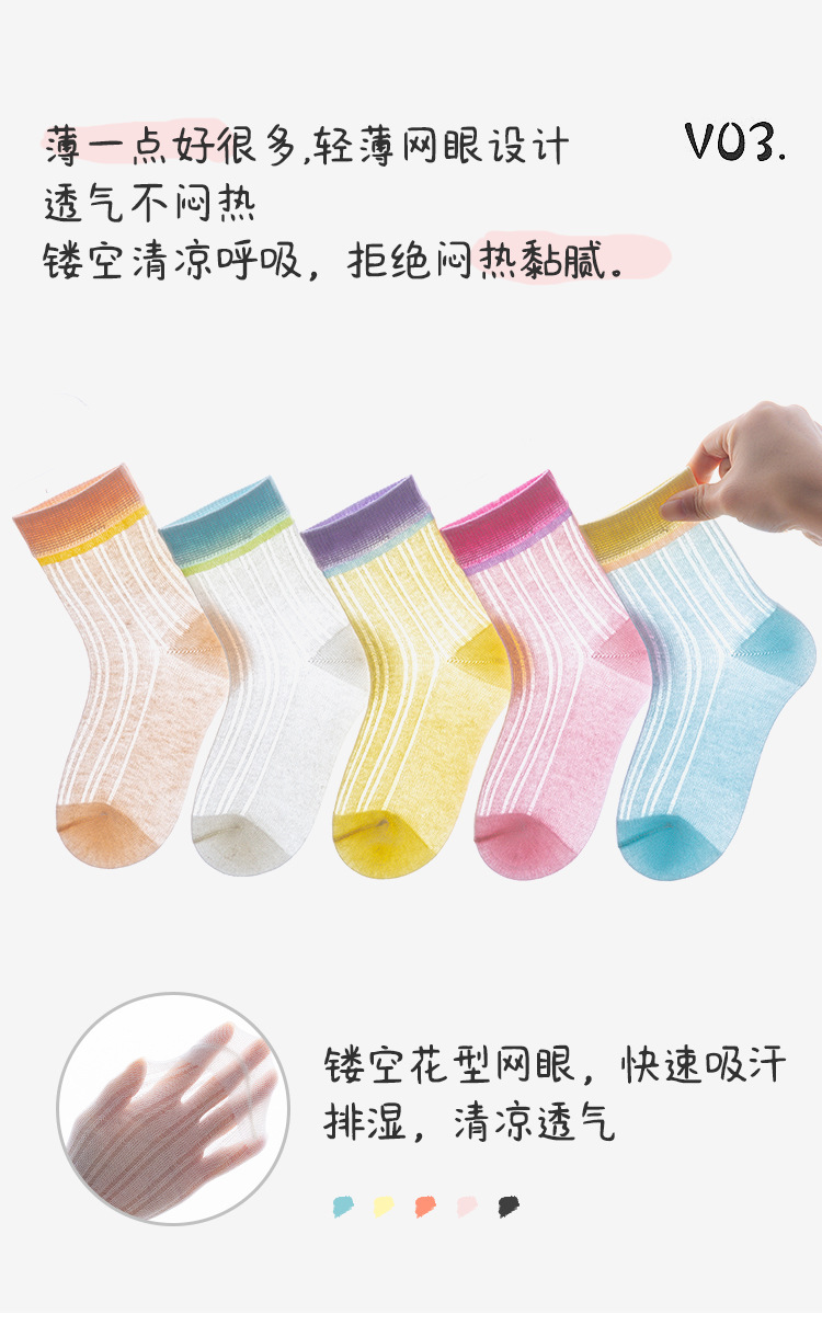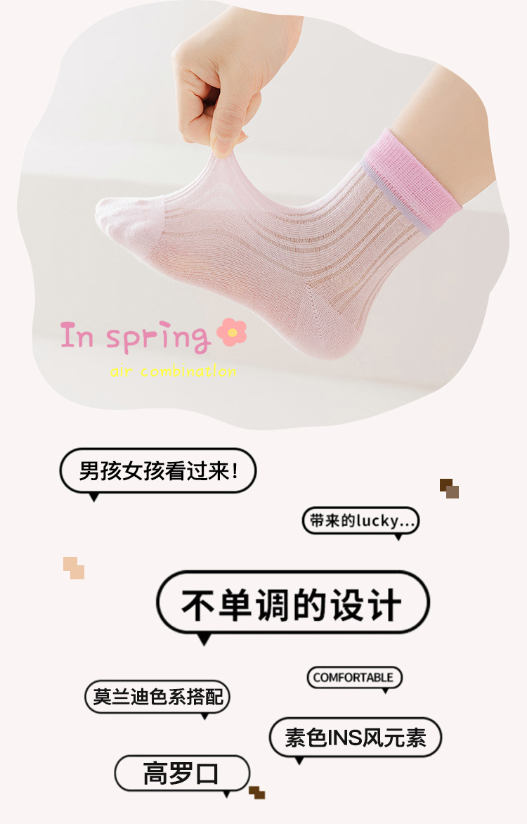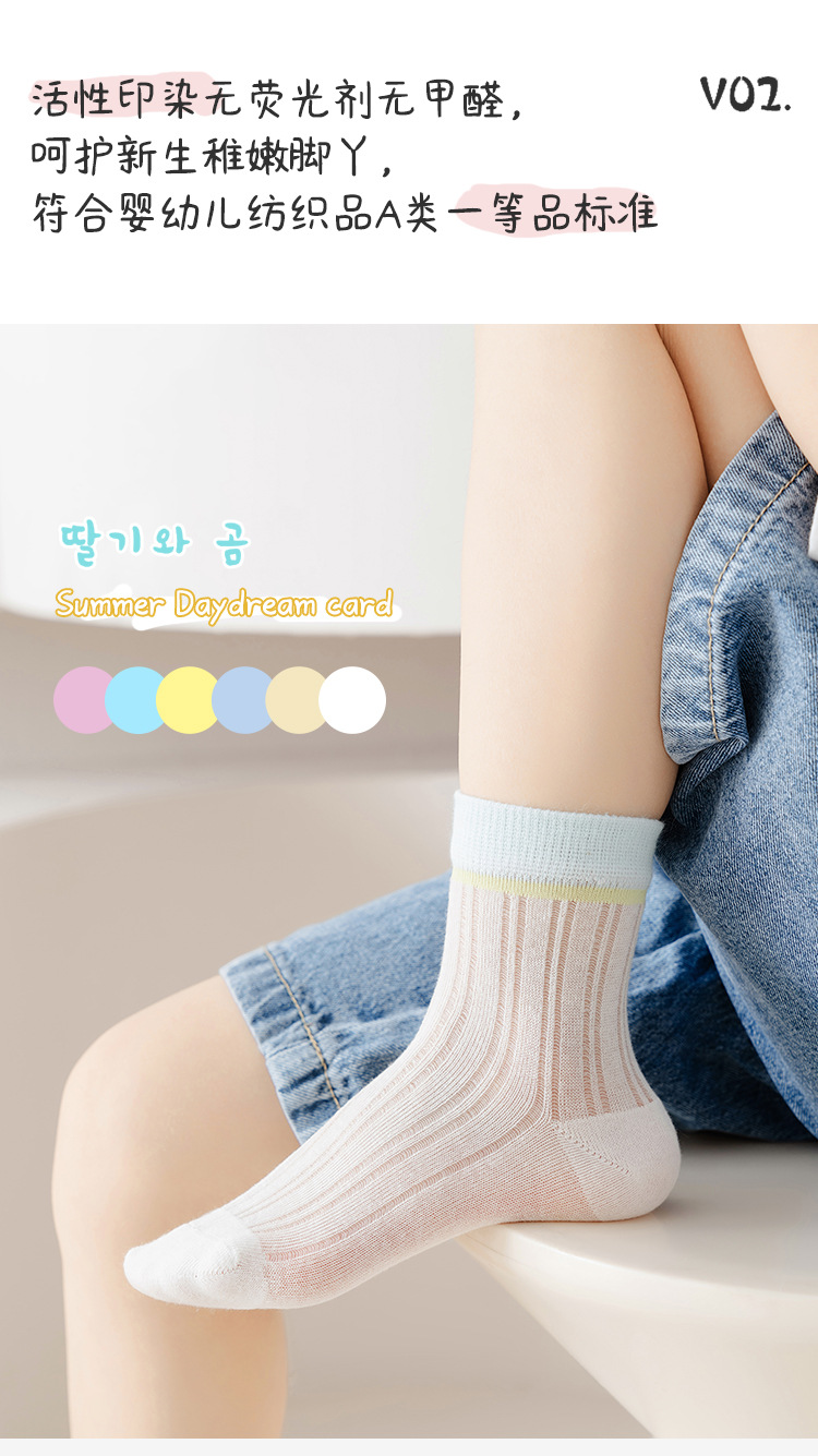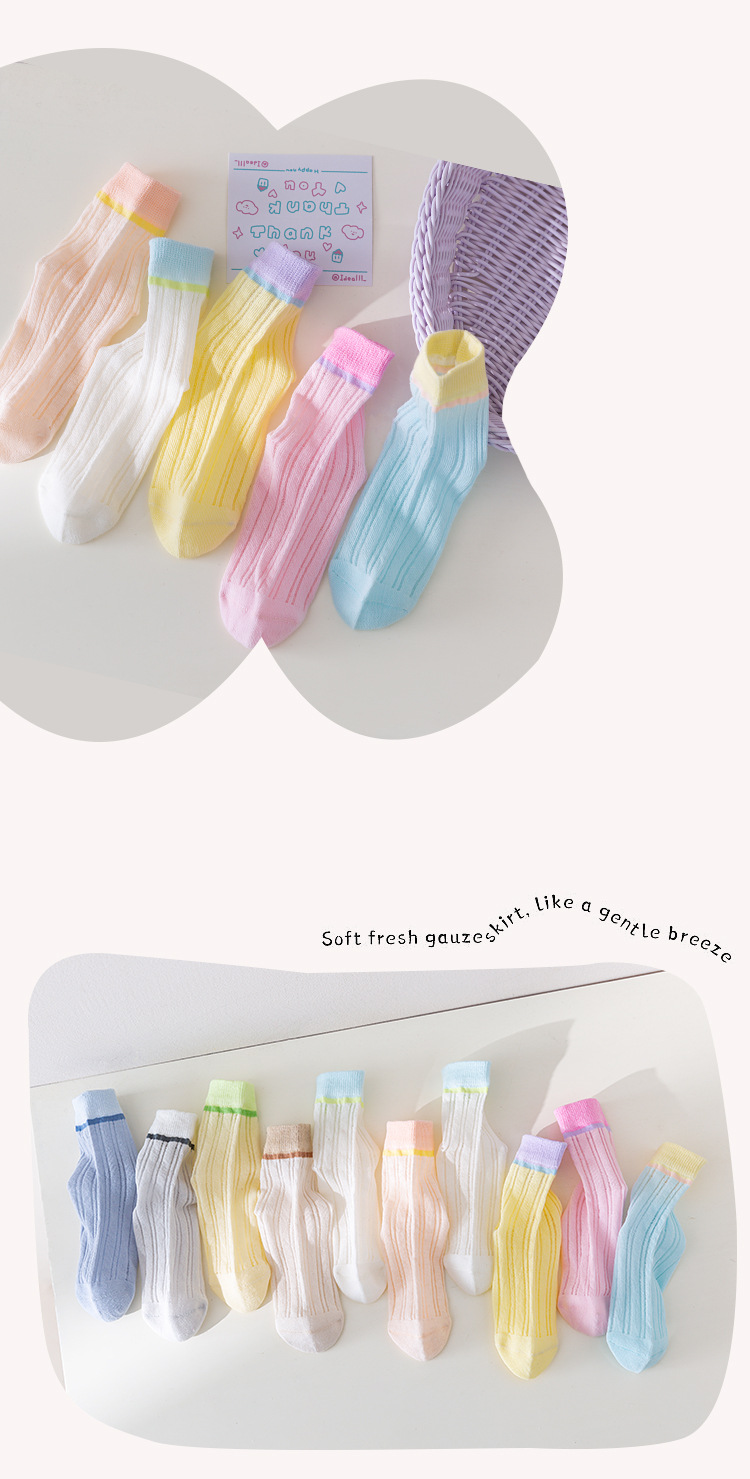 어린이 양말 여름 클래스 A 남성과 여성의 아기 메쉬 솔리드 컬러 얇은 코튼 캐스는 푹신한 발이 아닌 높은 탄성 기울임 양말