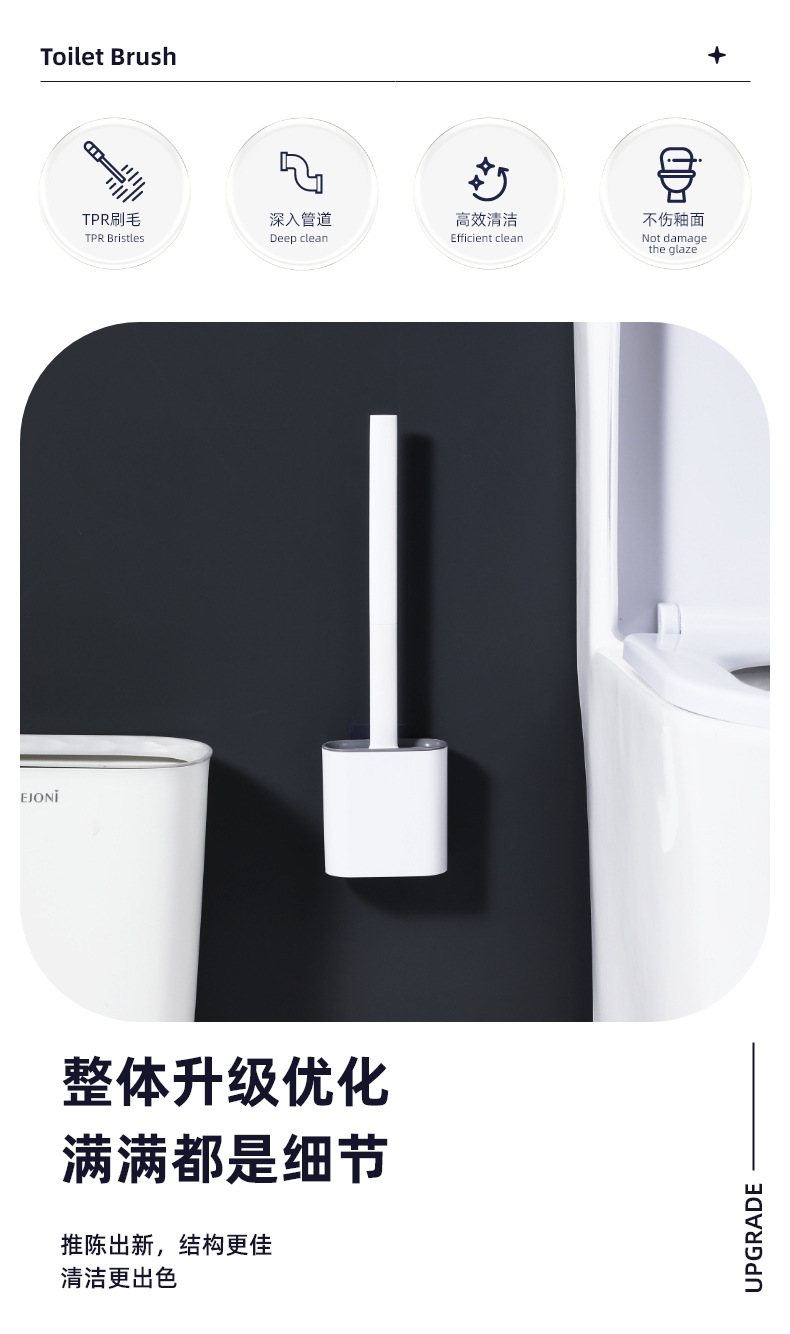 새로운 뜨거운 판매 실리콘 화장실 브러시 가정용 벽 장착 플라스틱 화장실 브러시 베이스 긴 손잡이 화장실 청소 브러쉬