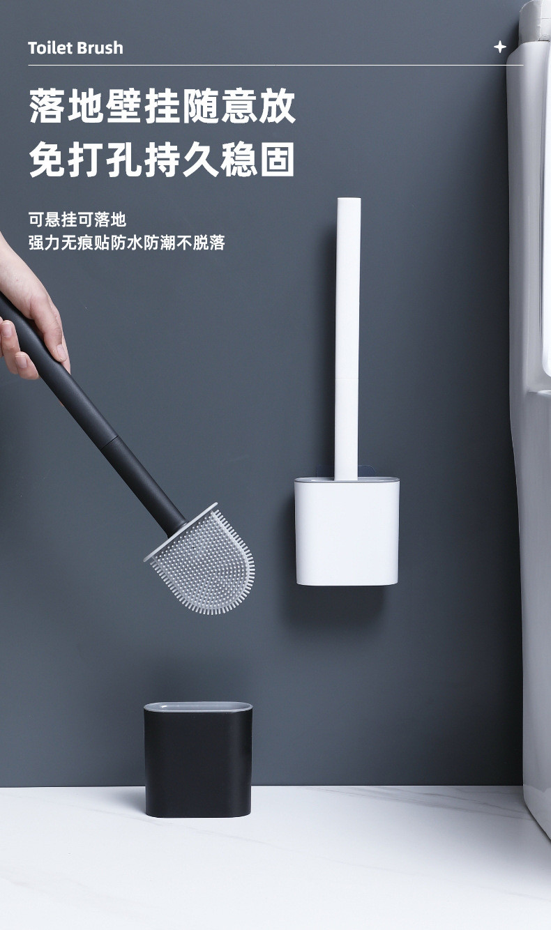 새로운 뜨거운 판매 실리콘 화장실 브러시 가정용 벽 장착 플라스틱 화장실 브러시 베이스 긴 손잡이 화장실 청소 브러쉬스토어 가기