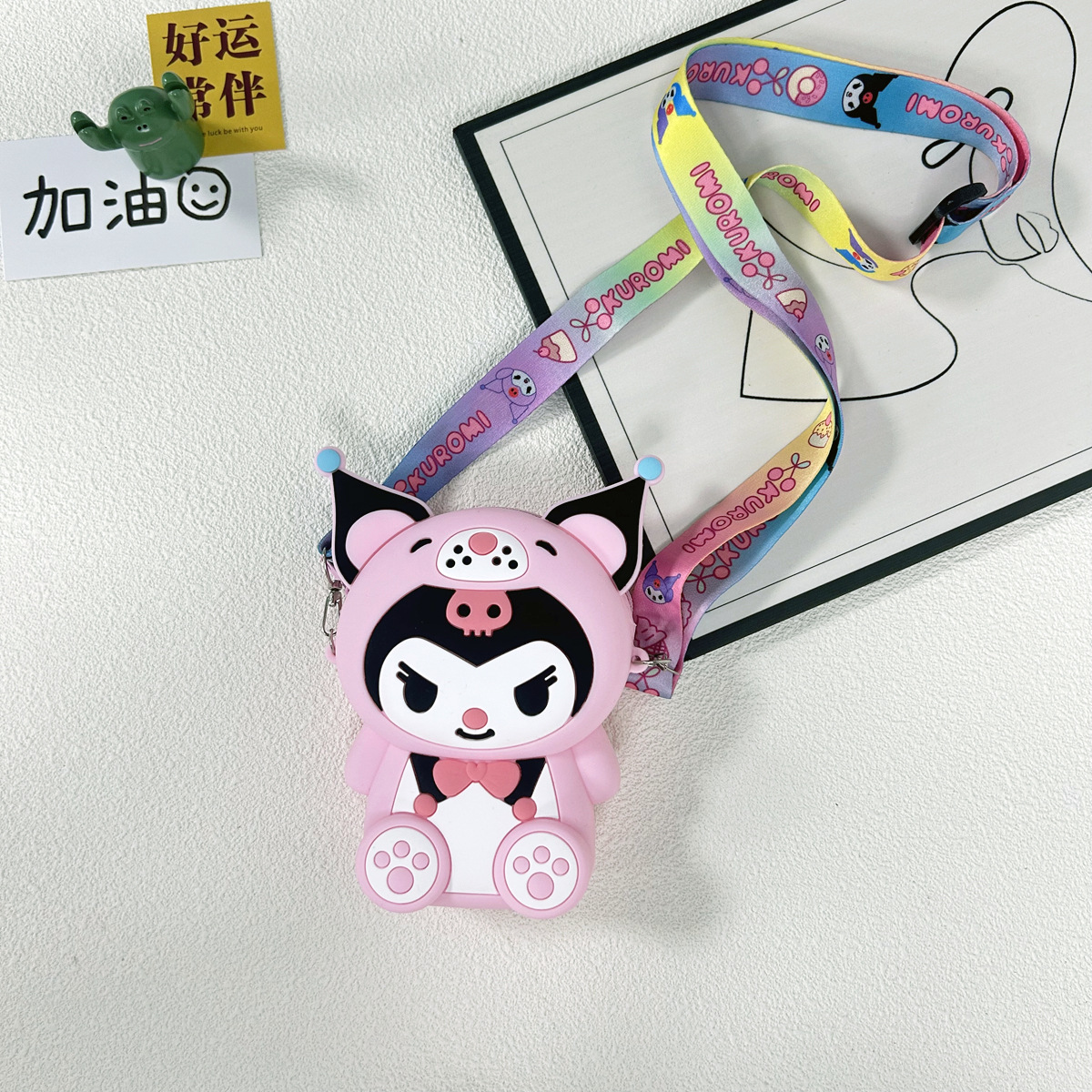 크로스보더 쿠로미 인형 가방 크로스백 어린이용 실리콘 동전 지갑 방수 경량 공장 직배송스토어 가기