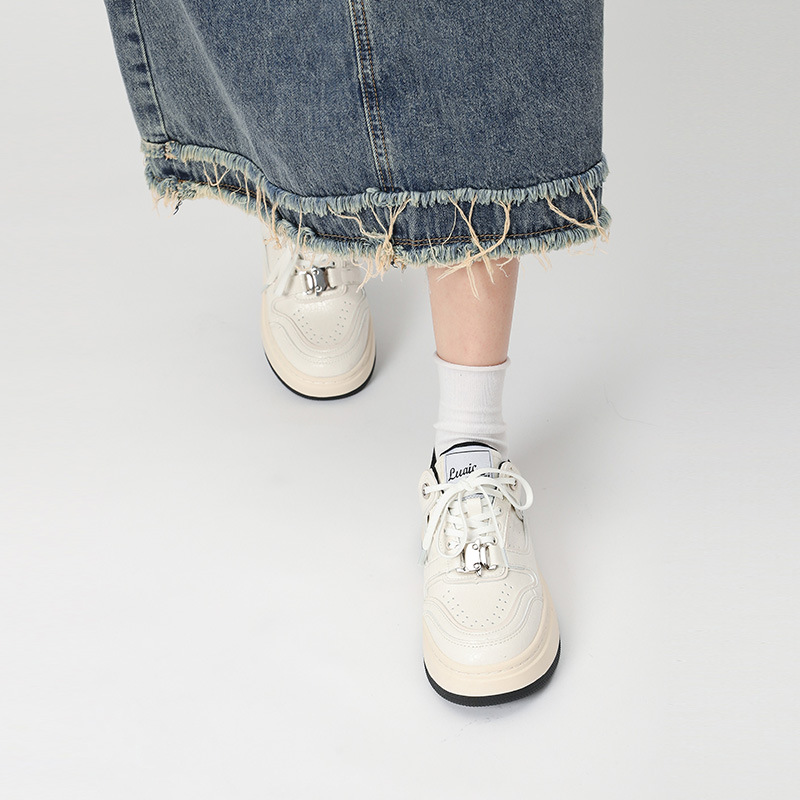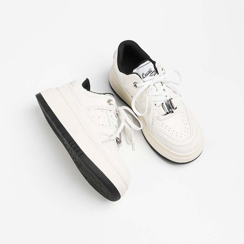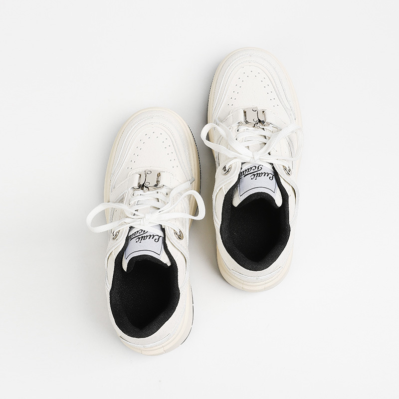 Cowhide 크랙 캐주얼 보드 신발 2024 사계절 틈새 두꺼운 밑창 작은 흰색 신발 운동화 조수