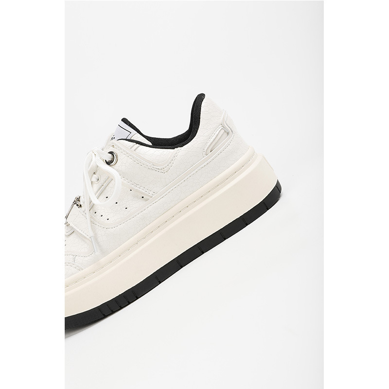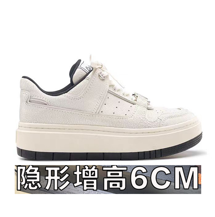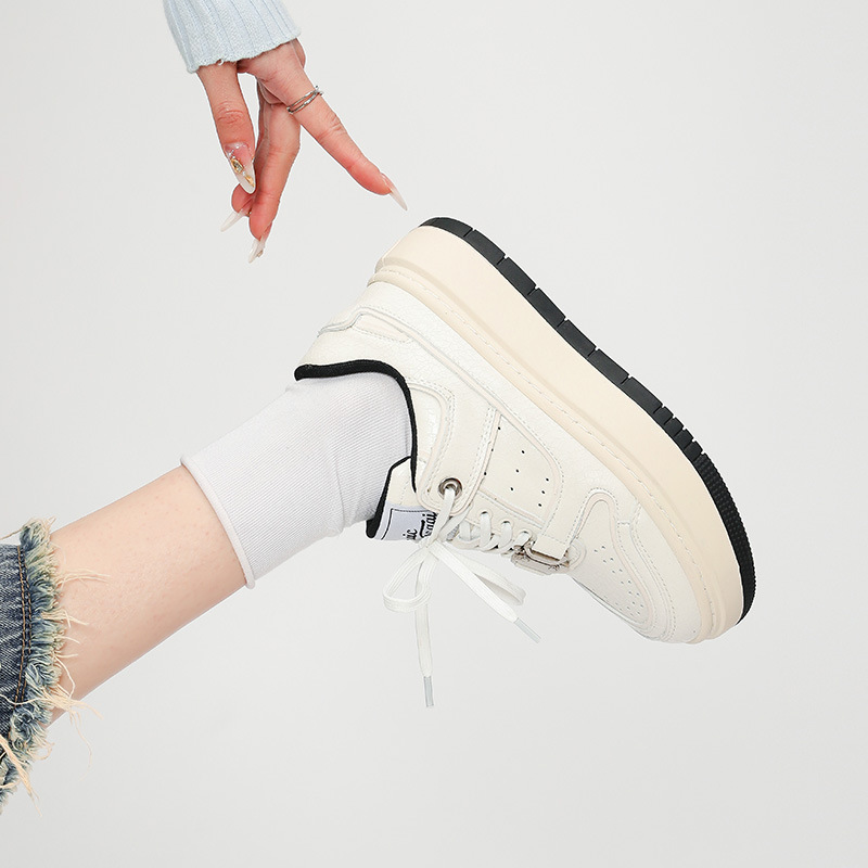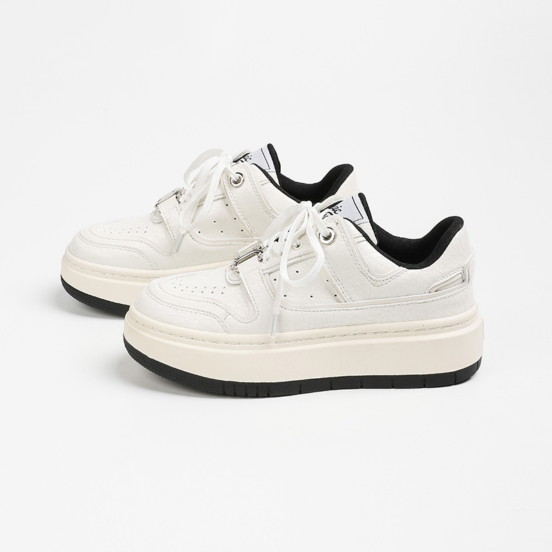 Cowhide 크랙 캐주얼 보드 신발 2024 사계절 틈새 두꺼운 밑창 작은 흰색 신발 운동화 조수스토어 가기