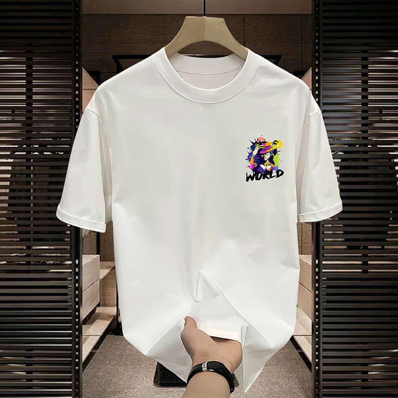 헤비웨이트 트렌디 브랜드 순면 프린트 남성 반팔 티셔츠 2026년 신상 여름 인기 트렌디 캐주얼 라운드넥 티셔츠스토어 가기