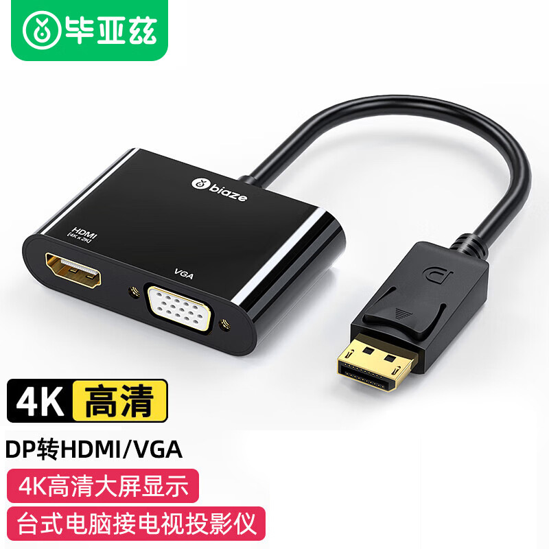 • 미니 DP - VGA/HDMI-4K 울트라 클리어 블랙