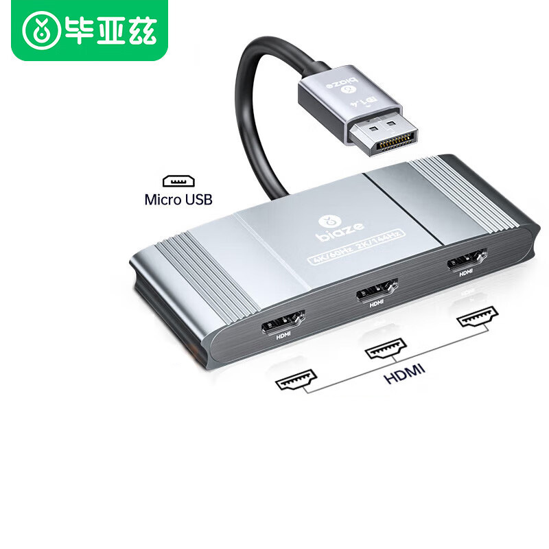 • DP-HDMI 1-3 변환기 도킹 스테이션 4k60hz 멀티 스크린 확장 복사 기능 지원 데스크탑 그래픽 카드 노트북 TV 모니터
