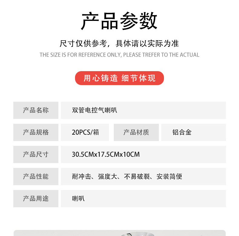 자동차 달팽이 경적 12V 방수 고음 스피커(브래킷 포함) 전기 경적 24V 슈퍼 대형 베이스형 전기 경적 155