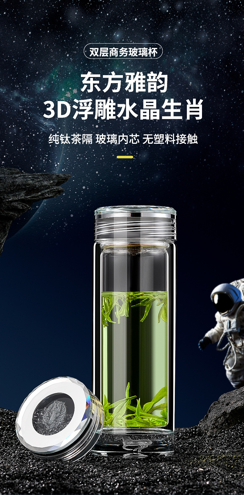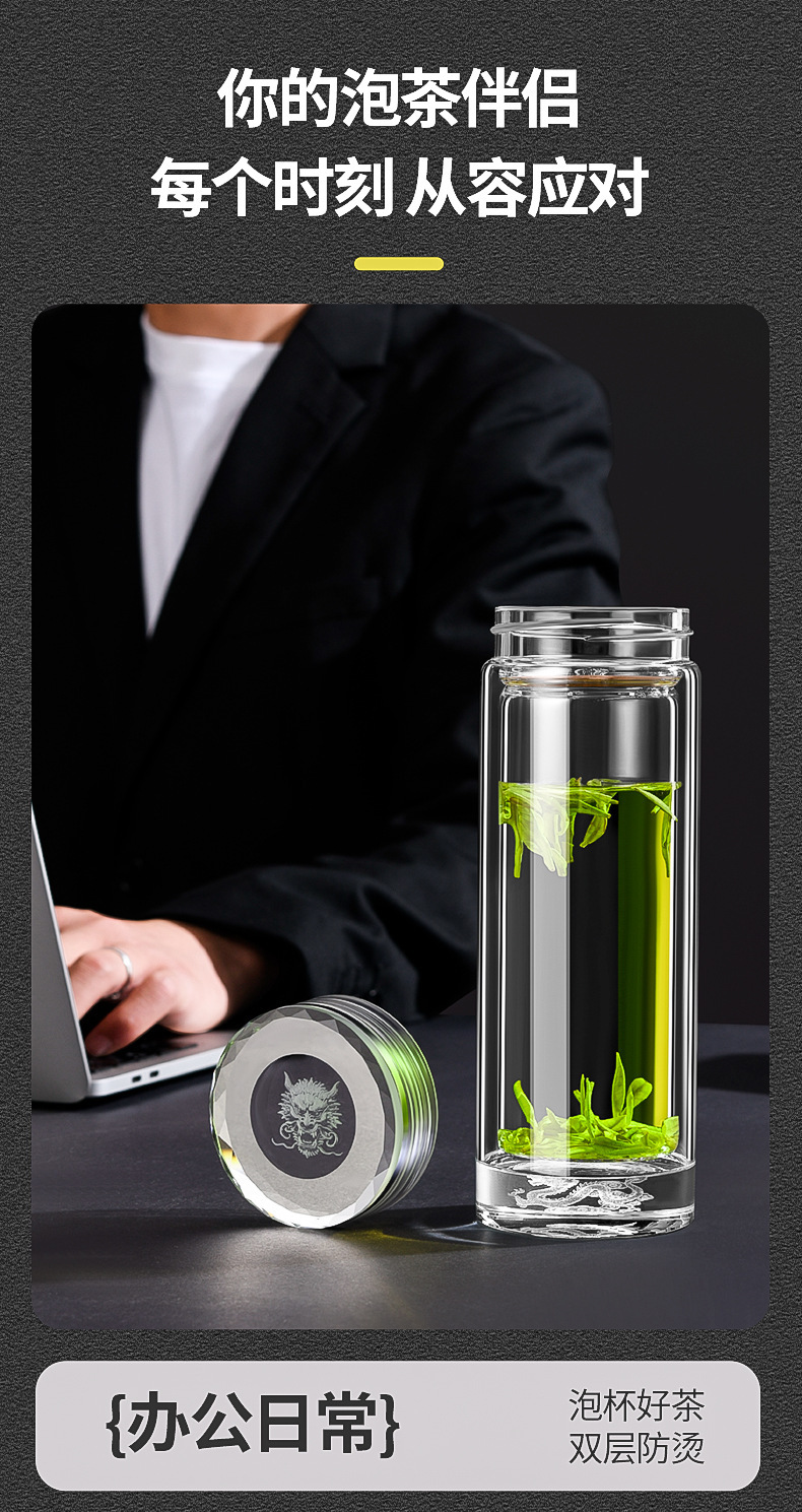 조디악 더블 레이어 유리 비즈니스 티 컵 남자 성격 독점 티 컵 선물 컵 열 절연 컵스토어 가기