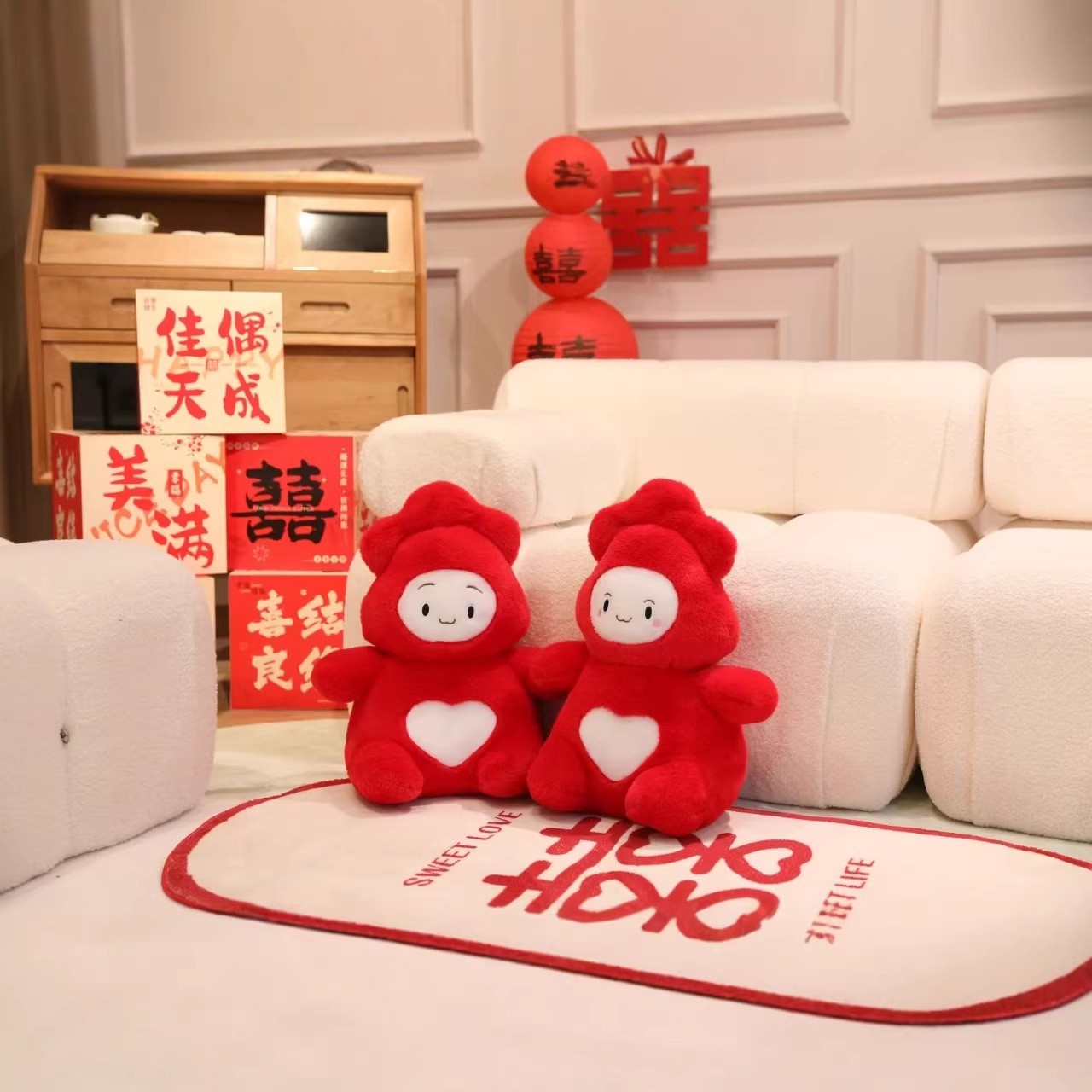 프레스 침대 인형 한 쌍의 결혼식 행복한 단어 베개 인형 행복한 인형 웨딩 룸 레이아웃 용품 결혼 선물을 보내 새로운 딩스토어 가기