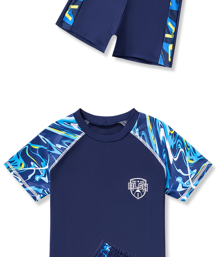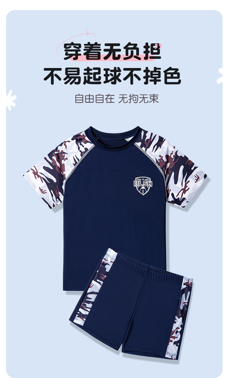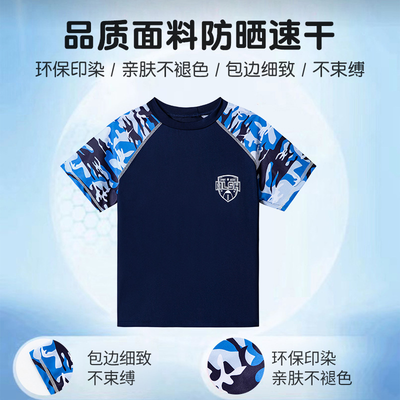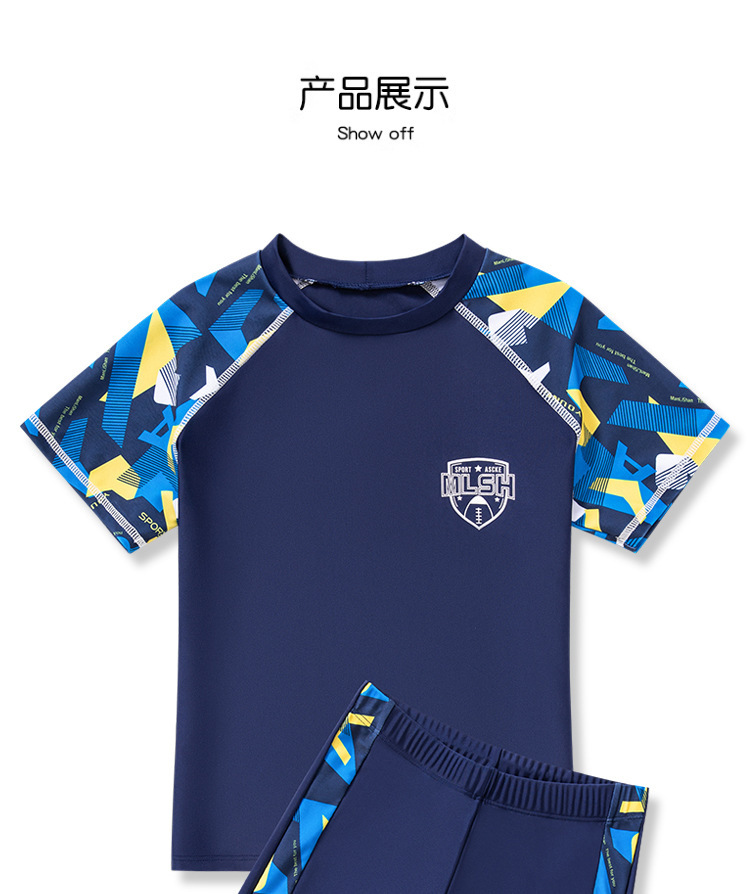 새로운 어린이 수영복 빅 키즈 베이비 스플릿 세트 수영 트렁크 얇은 반팔 비치 수영복 소년 수영복
