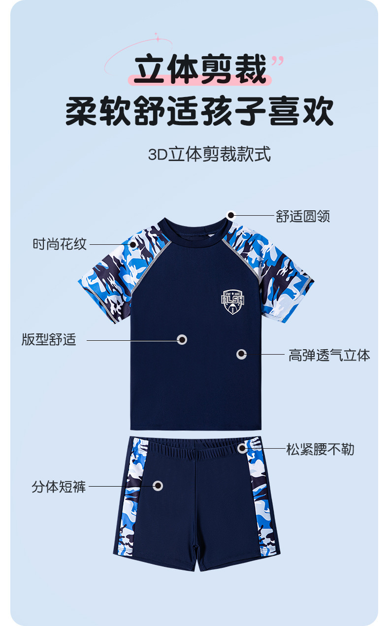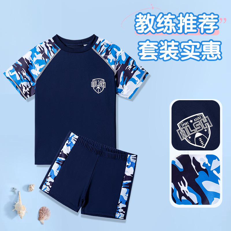새로운 어린이 수영복 빅 키즈 베이비 스플릿 세트 수영 트렁크 얇은 반팔 비치 수영복 소년 수영복스토어 가기