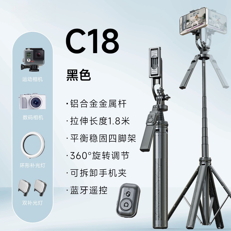 • C18-1 알루미늄 합금 1.8 m 블루투스 (G13) 셀카 스틱 더블 라이트 (D03 작은 빛) 저장 가방