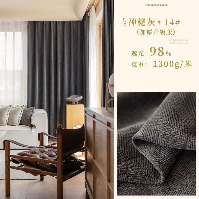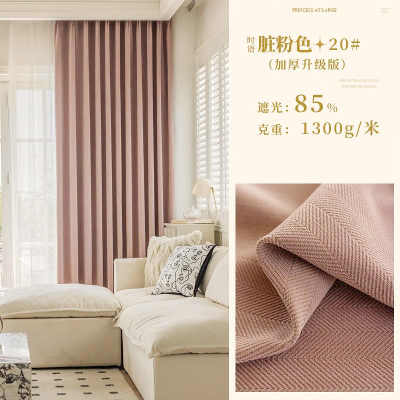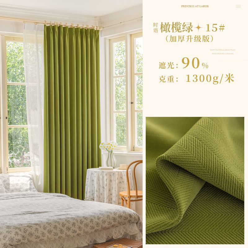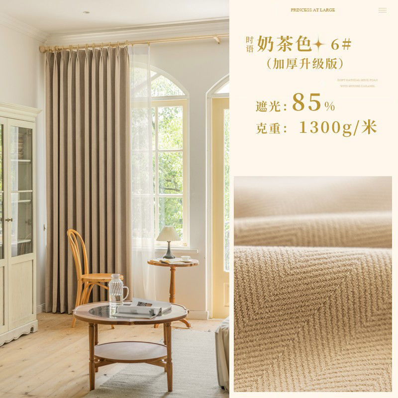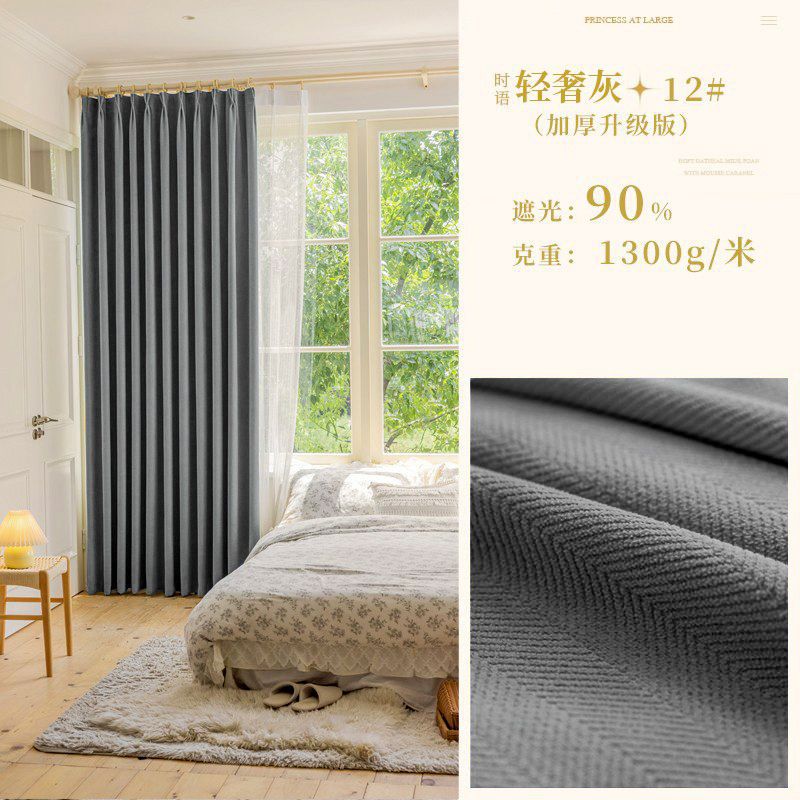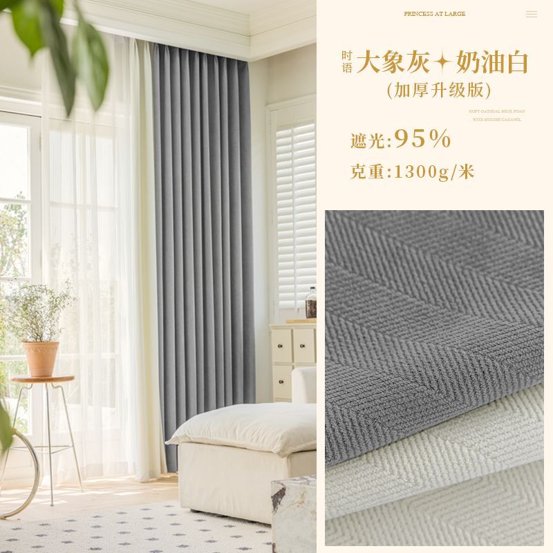 Chenille 커튼 풀 쉐이딩 2024 인터넷 유명인 헤링본 패턴 현대 간단한 침실 거실 발코니 원단 도매