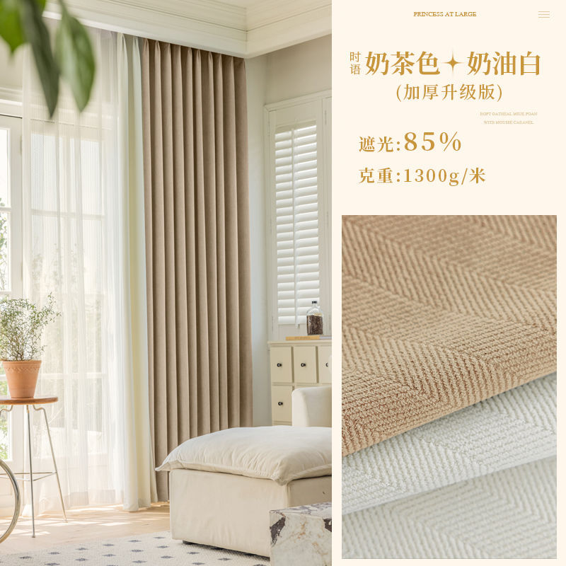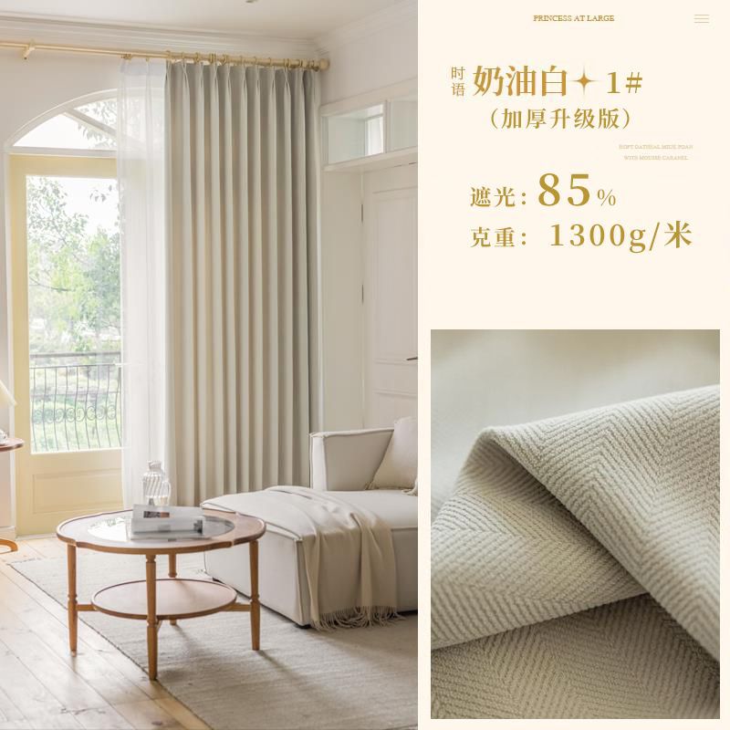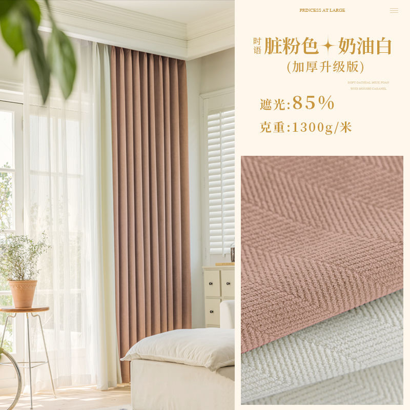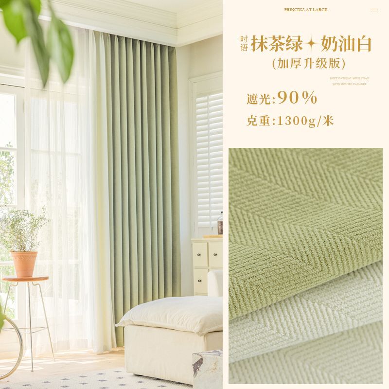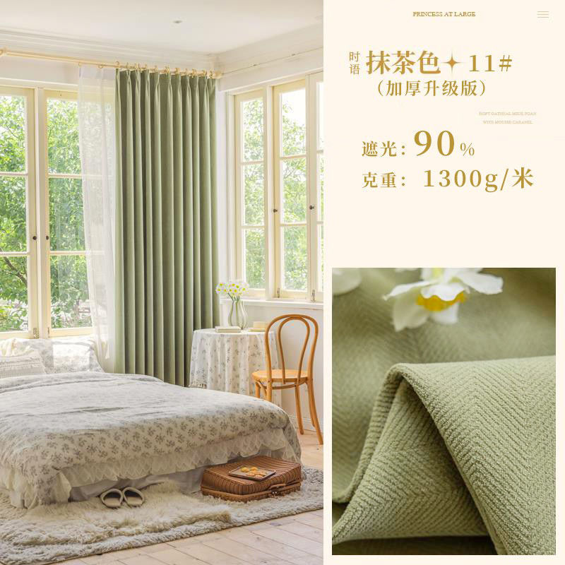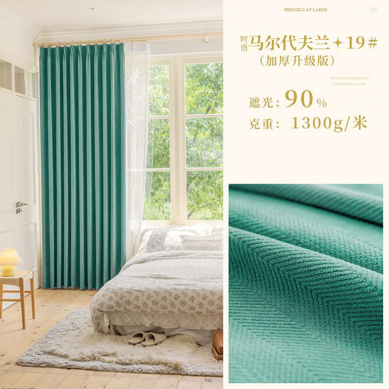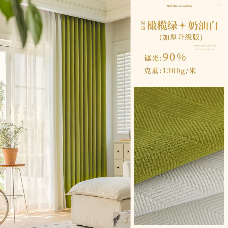 Chenille 커튼 풀 쉐이딩 2024 인터넷 유명인 헤링본 패턴 현대 간단한 침실 거실 발코니 원단 도매