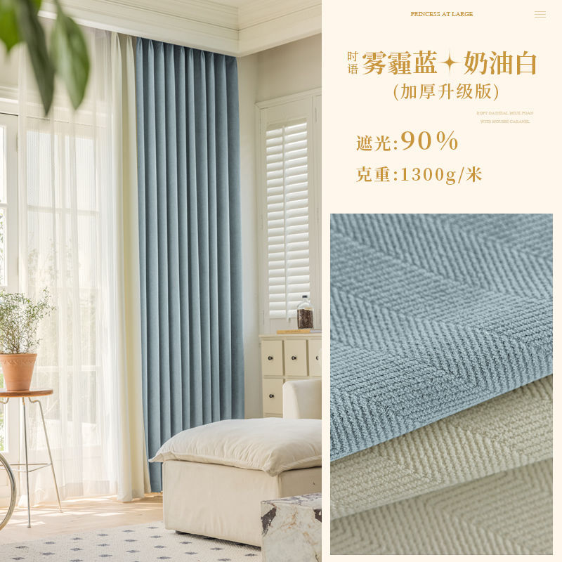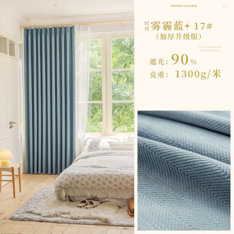 Chenille 커튼 풀 쉐이딩 2024 인터넷 유명인 헤링본 패턴 현대 간단한 침실 거실 발코니 원단 도매스토어 가기
