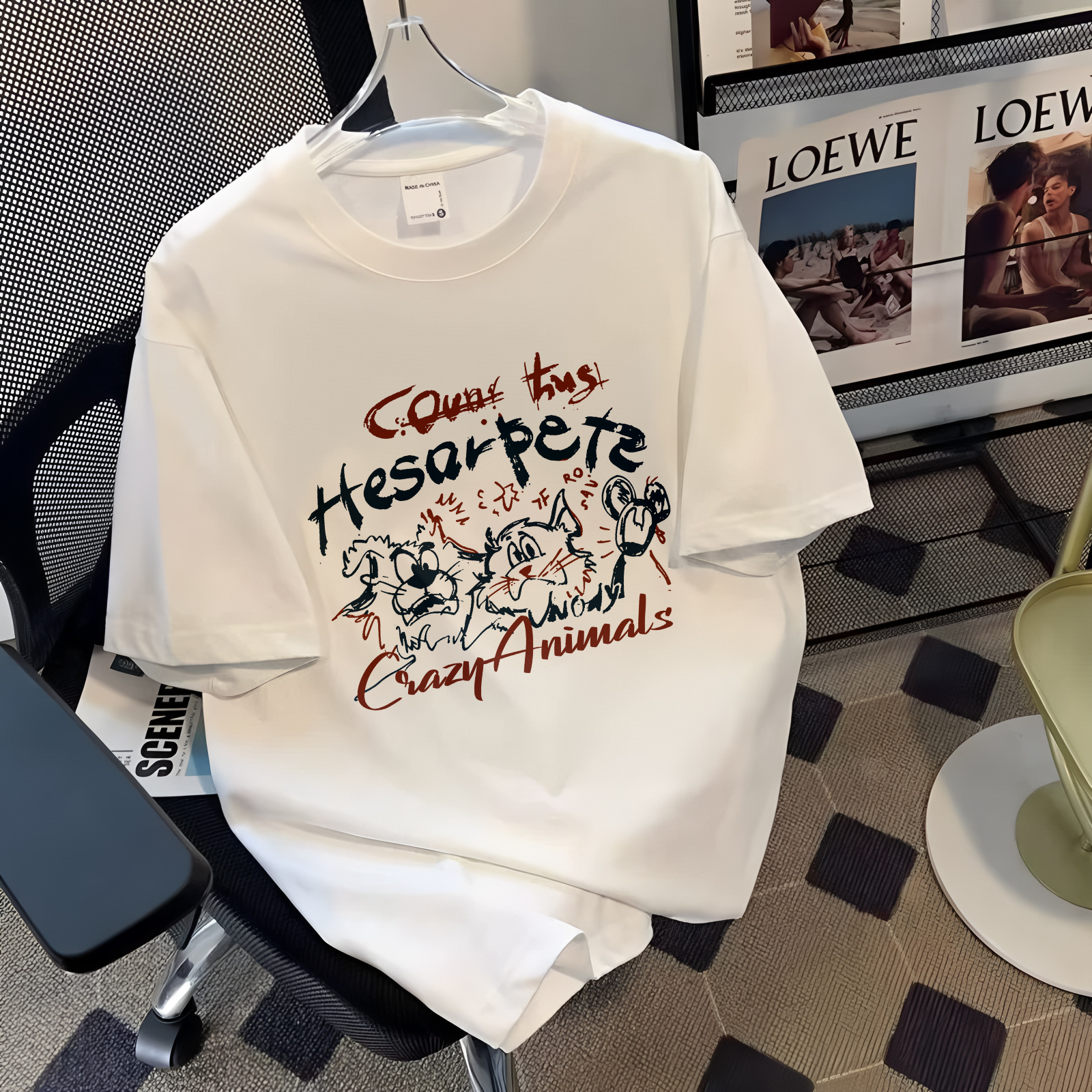 아메리칸 스타일 레트로 퓨어 코튼 반팔 티셔츠 유니섹스 남자 크루 넥 루즈 플러스 사이즈 최고 트렌디 브랜드 캐주얼 올 매치 헤어