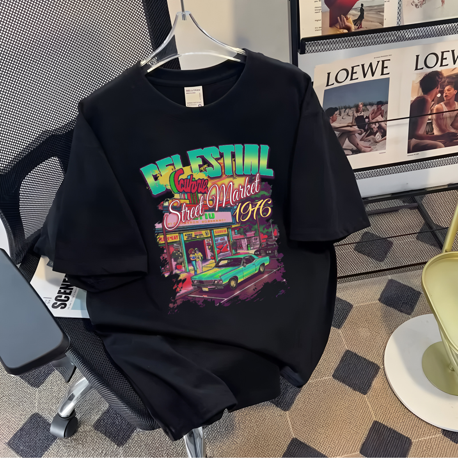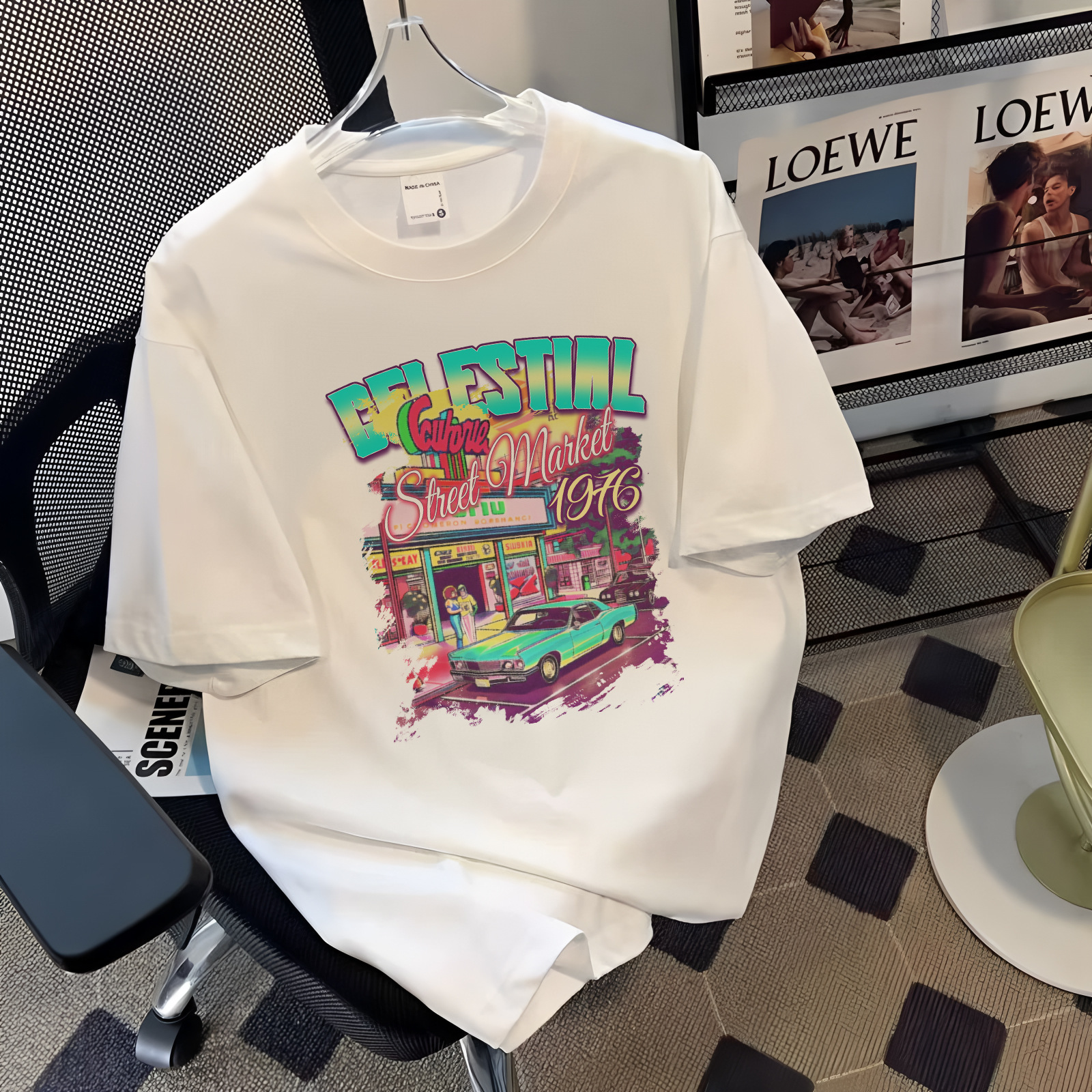 아메리칸 스타일 레트로 퓨어 코튼 반팔 티셔츠 유니섹스 남자 크루 넥 루즈 플러스 사이즈 최고 트렌디 브랜드 캐주얼 올 매치 헤어스토어 가기