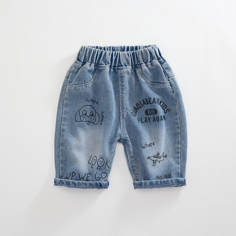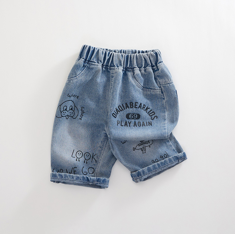 남학생 데님 바지 서양식 아기 반바지 2024 년 새 아동복 한국 어린이 청바지 바지스토어 가기
