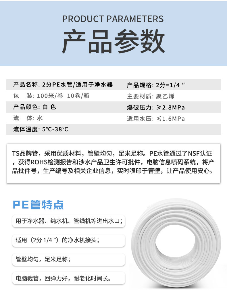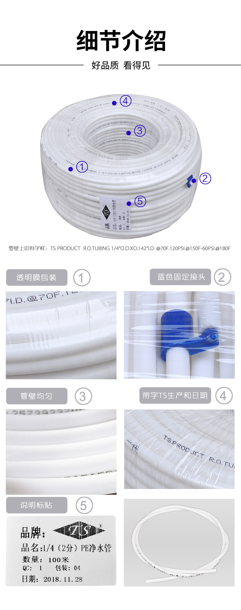 NSF 인증 2 TS 세대 PE 수도관 물 디스펜서 정수기 식품 등급 직접 식수 파이프 1/4 급수 호스