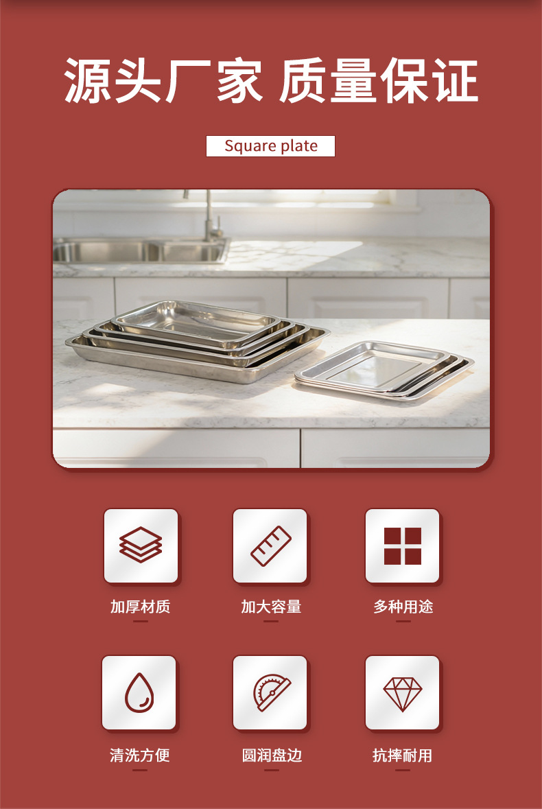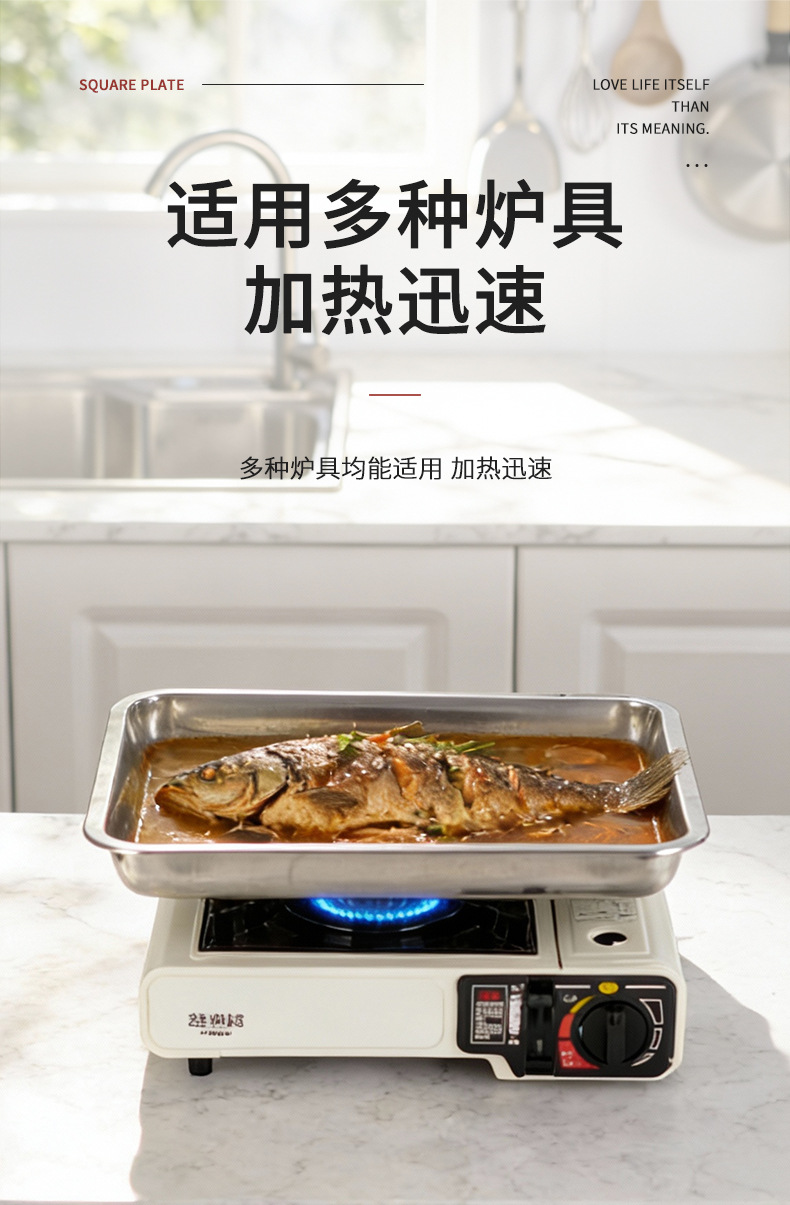 스테인레스 스틸 사각 접시 생선 구이 접시 가정용 바베큐 접시 스테인레스 스틸 트레이 직사각형 조리 접시 스테인레스 스틸 디너 접시