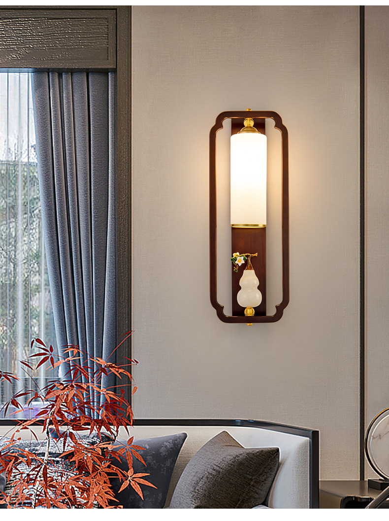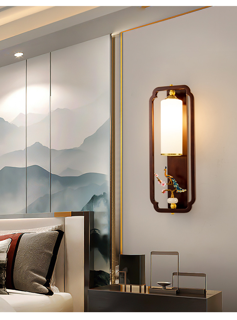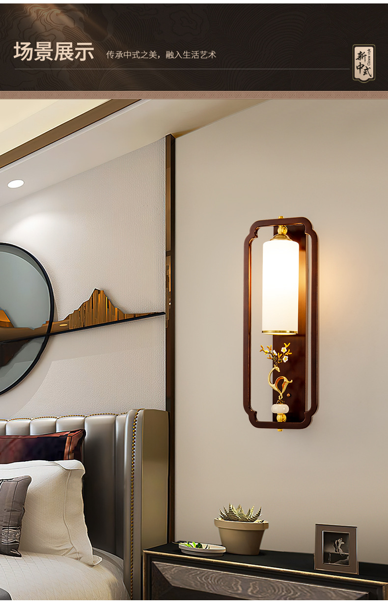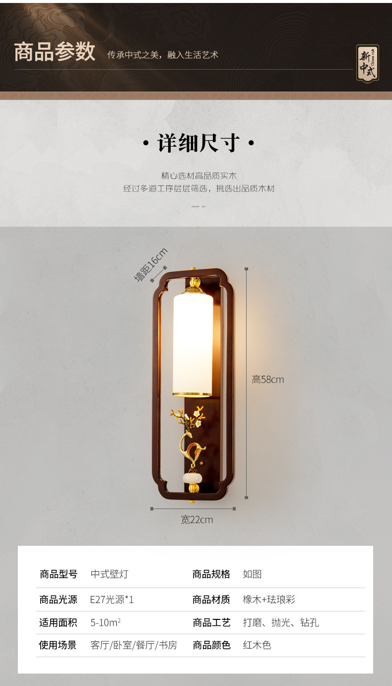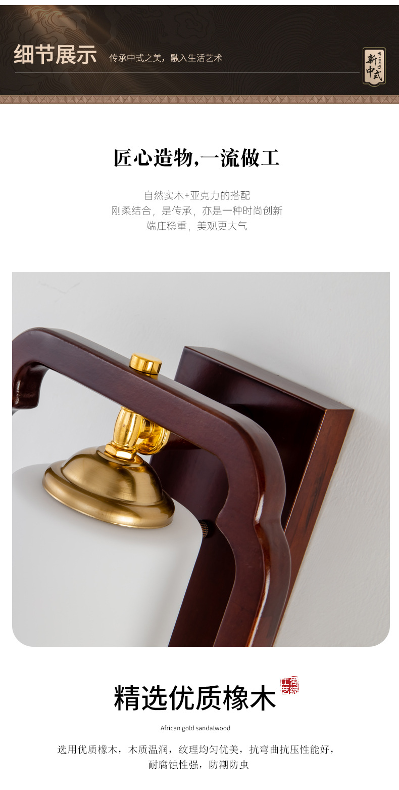 새로운 중국 스타일 단단한 나무 벽 램프 거실 TV 배경 벽 램프 침실 침실 통로 연구 중국 스타일 빈티지 램프