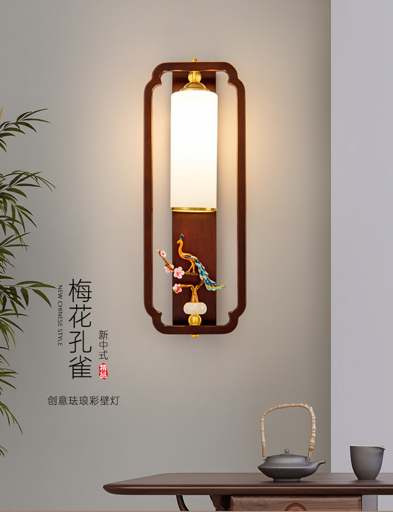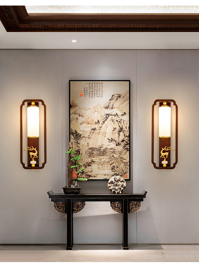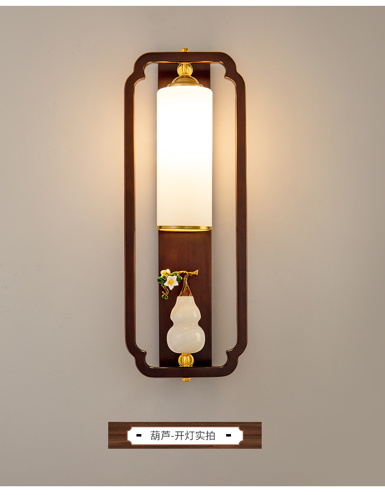 새로운 중국 스타일 단단한 나무 벽 램프 거실 TV 배경 벽 램프 침실 침실 통로 연구 중국 스타일 빈티지 램프스토어 가기