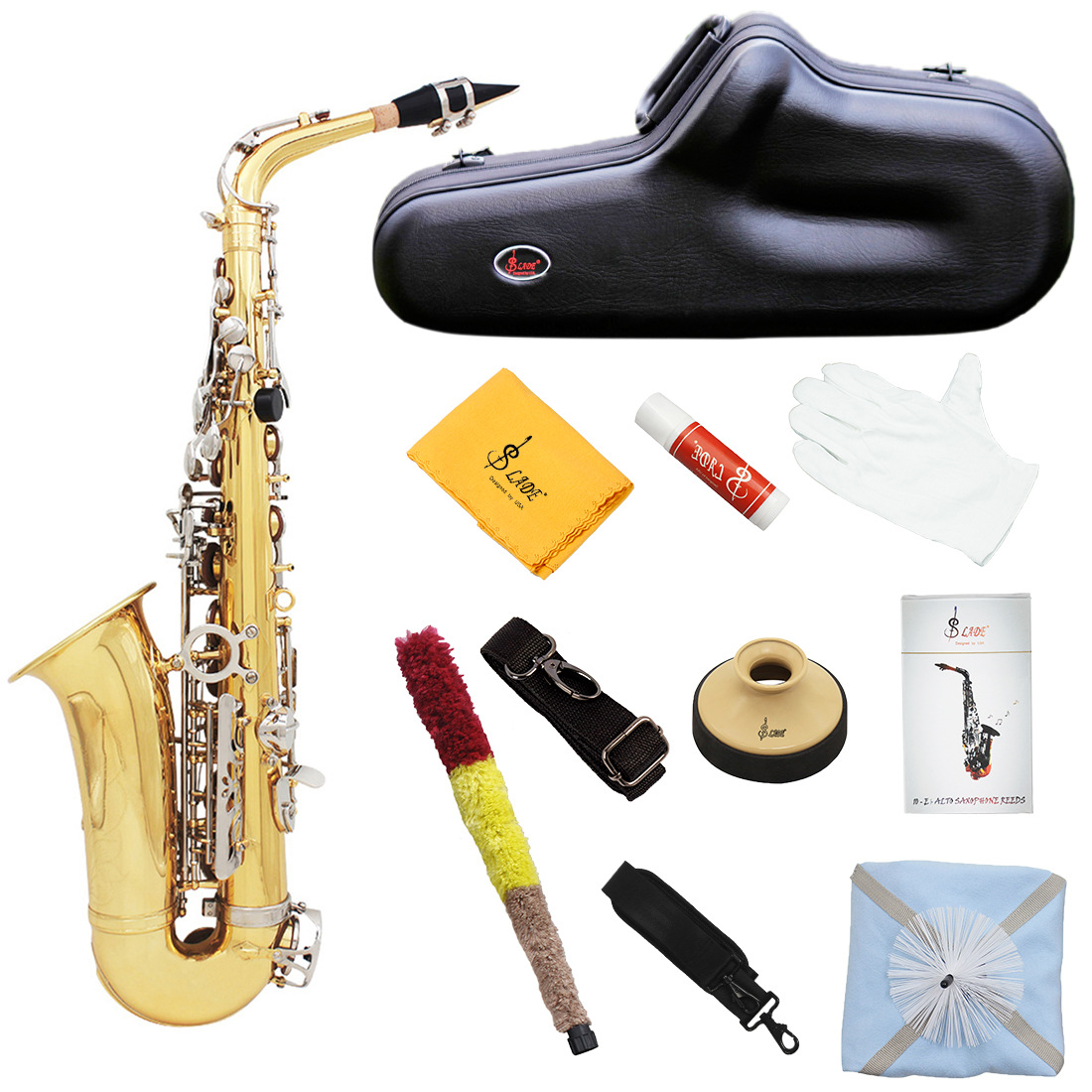 SLADE Alto Saxophone 가죽 박스 드롭 E-톤 초보자 성인 골드 및 실버 투톤 SAX 색소폰 바람 악기스토어 가기