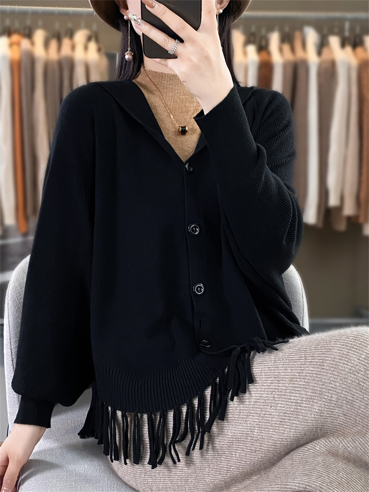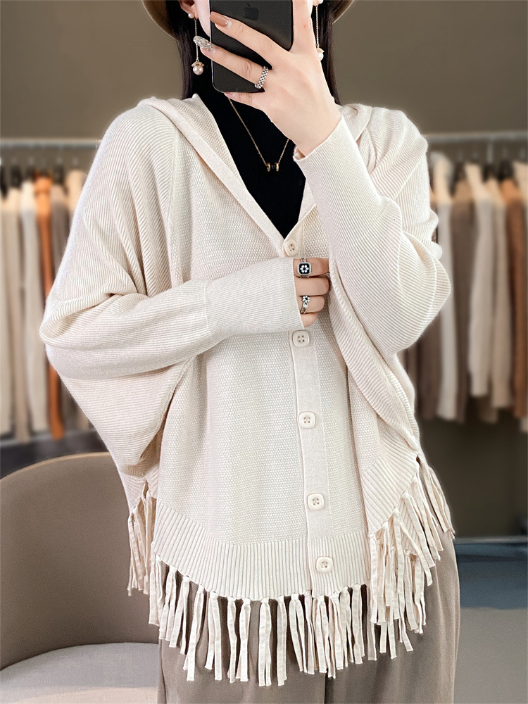 게으른 스타일 술 니트웨어 코트 여성용 가을 녹색 캐주얼 플러스 사이즈 박쥐 후드 스웨터 느슨한 카디건스토어 가기