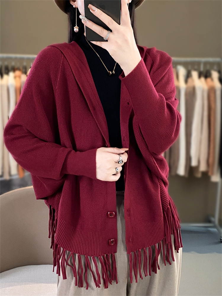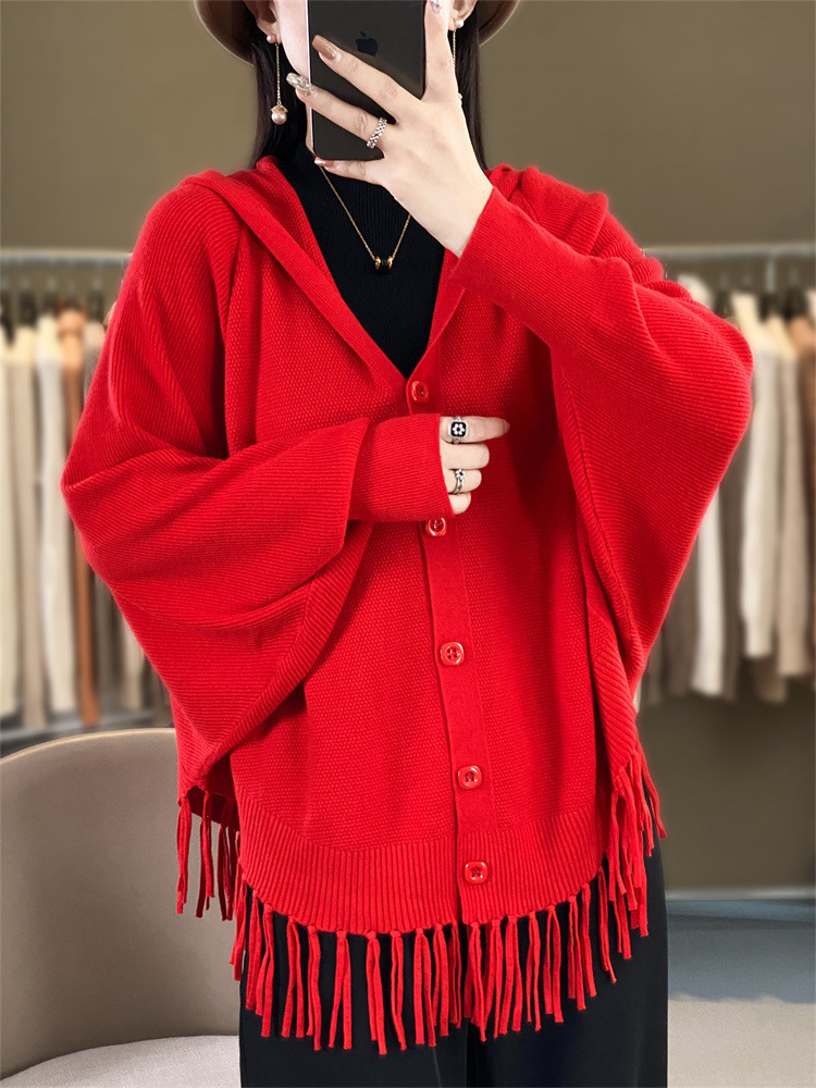 게으른 스타일 술 니트웨어 코트 여성용 가을 녹색 캐주얼 플러스 사이즈 박쥐 후드 스웨터 느슨한 카디건