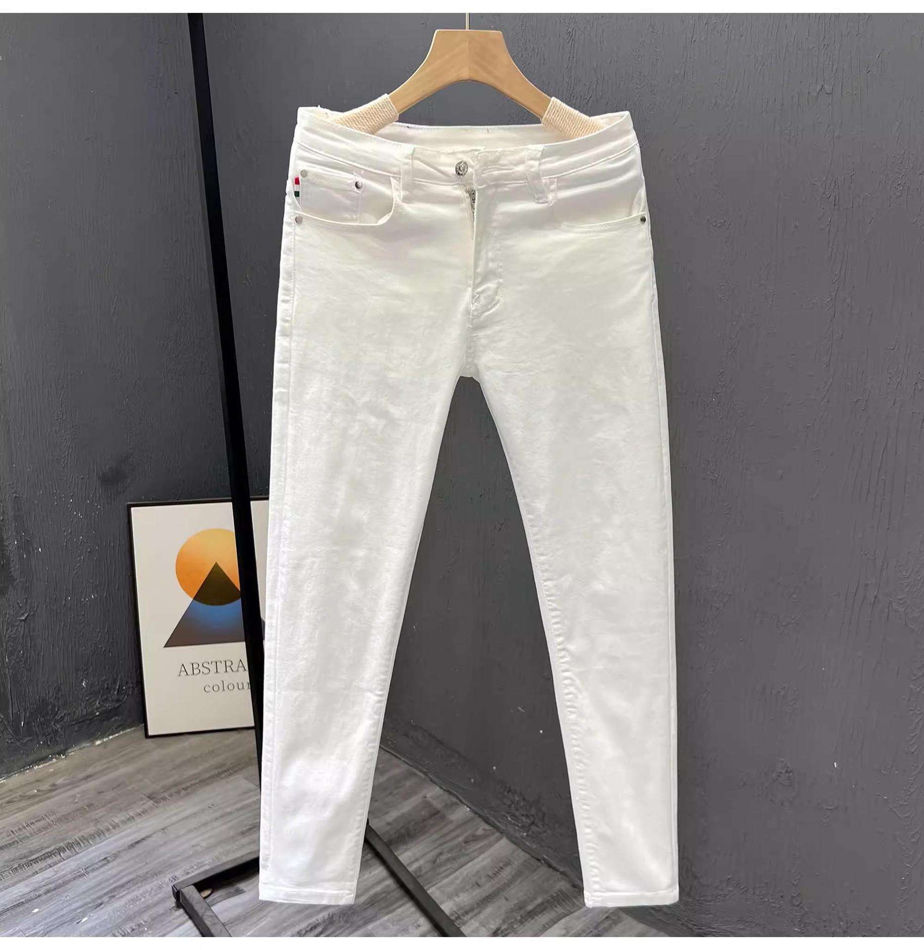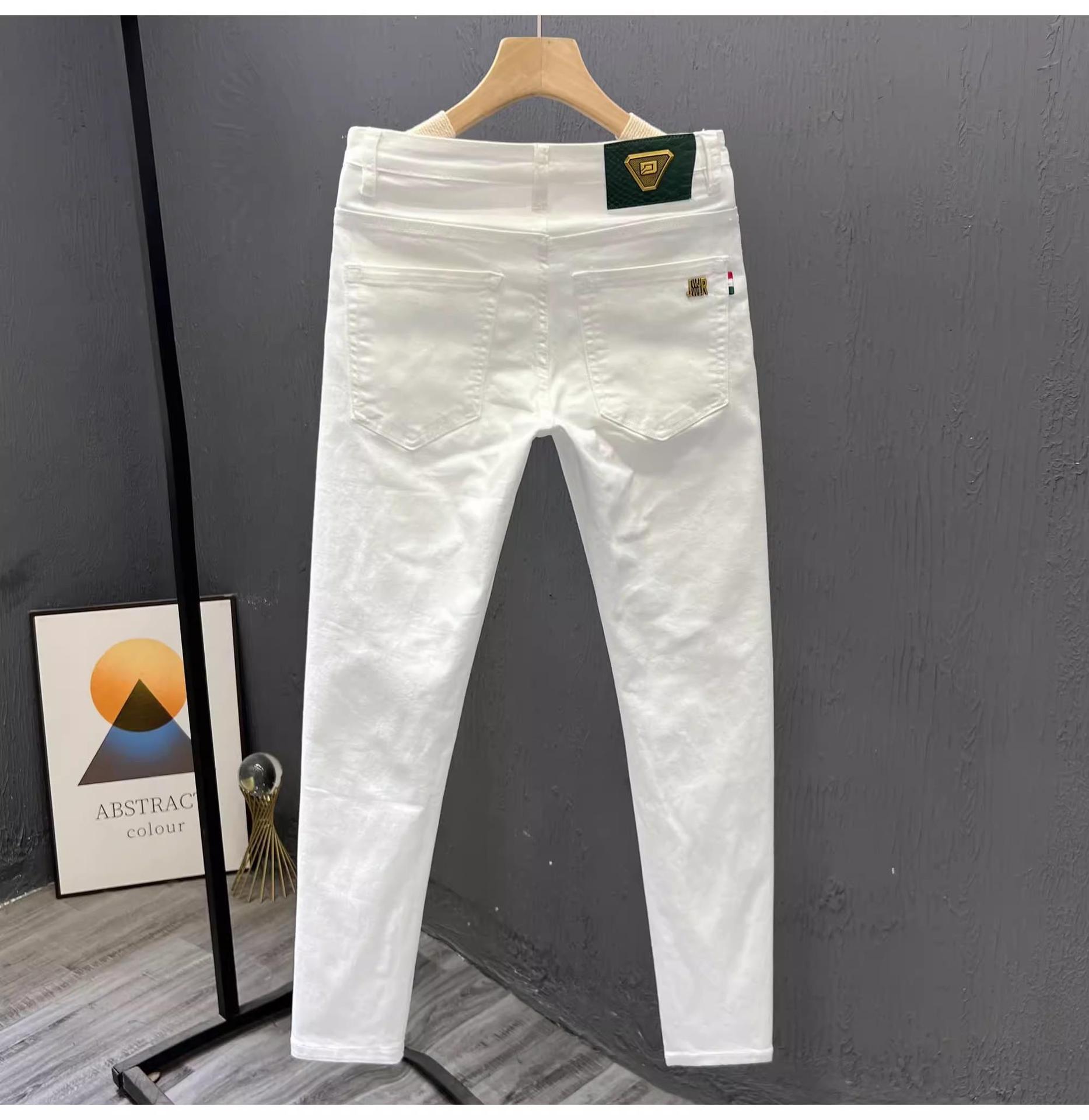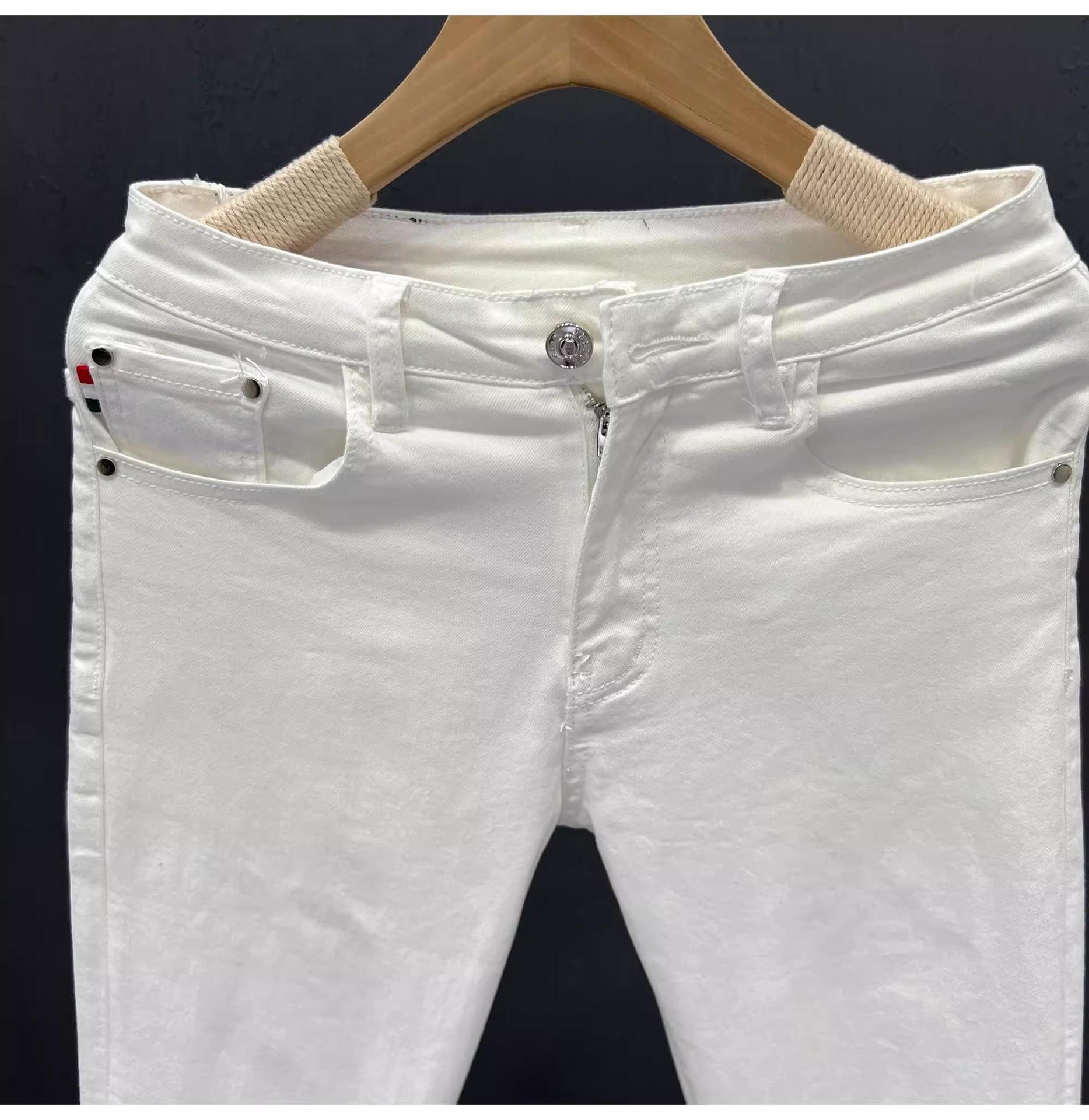 하이 엔드 남성 화이트 바지 간단한 여름 트렌디 남성 비즈니스 코튼 스키니 청바지 슬림 핏 발목 길이 바지