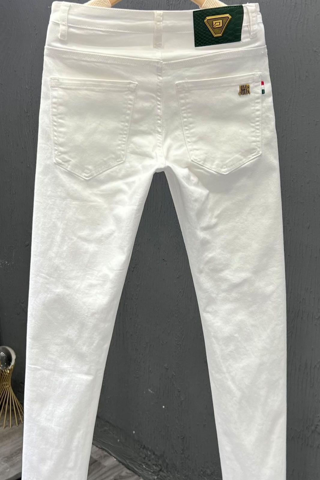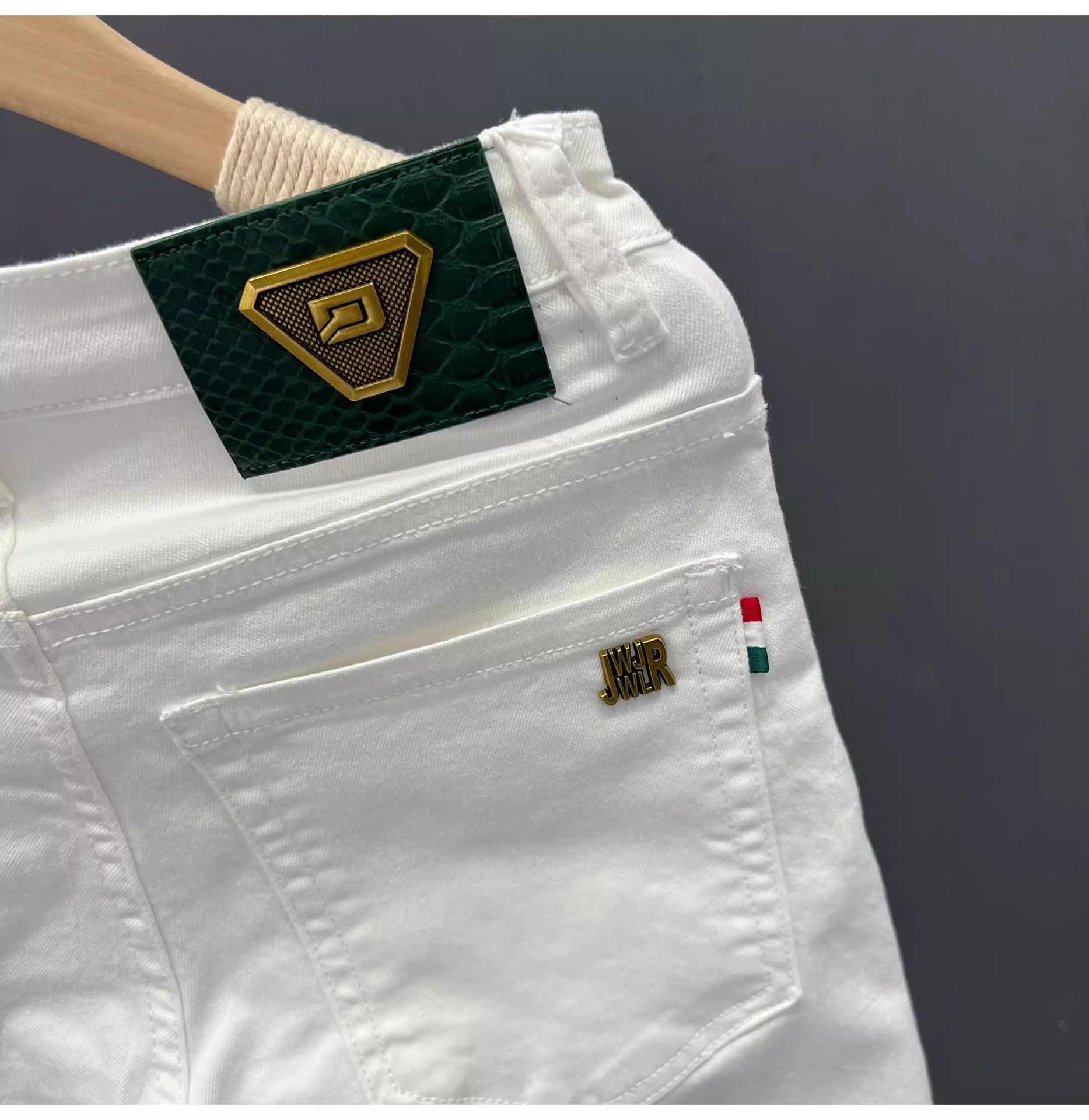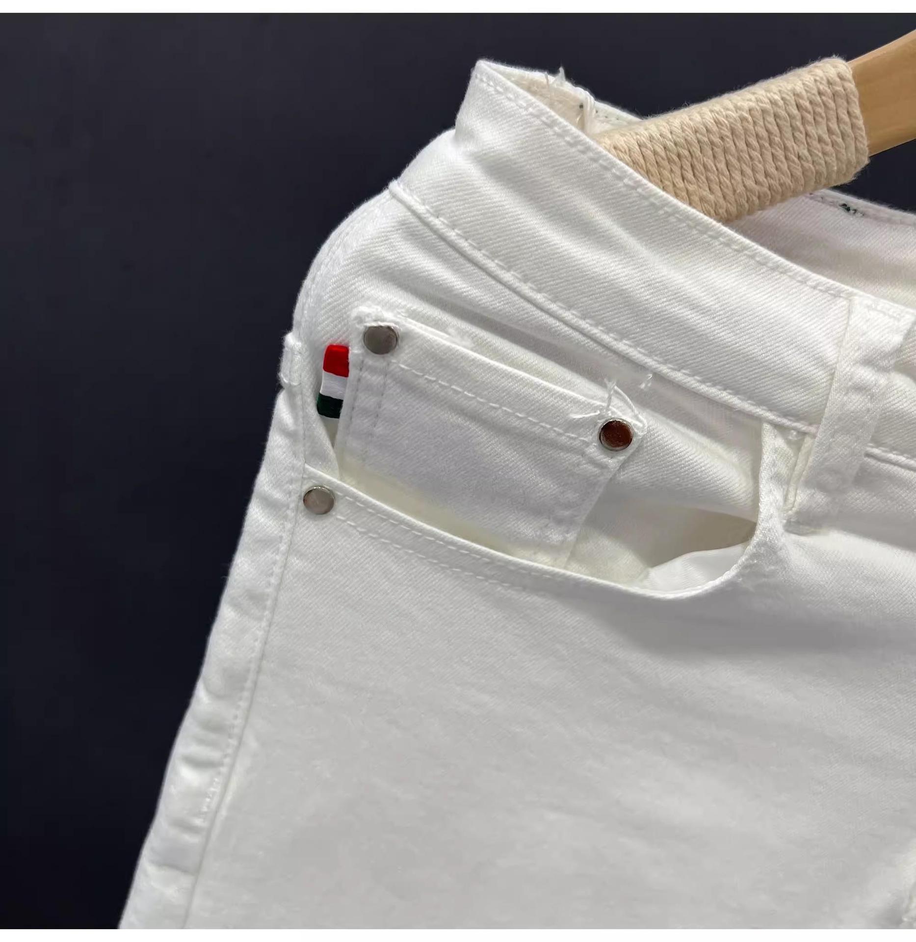 하이 엔드 남성 화이트 바지 간단한 여름 트렌디 남성 비즈니스 코튼 스키니 청바지 슬림 핏 발목 길이 바지