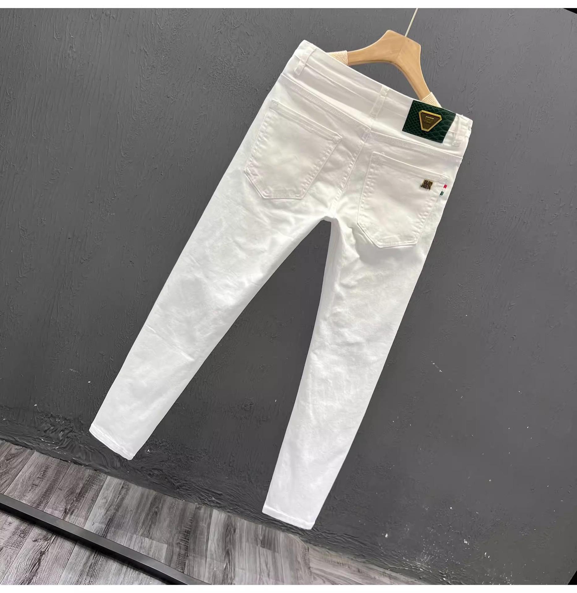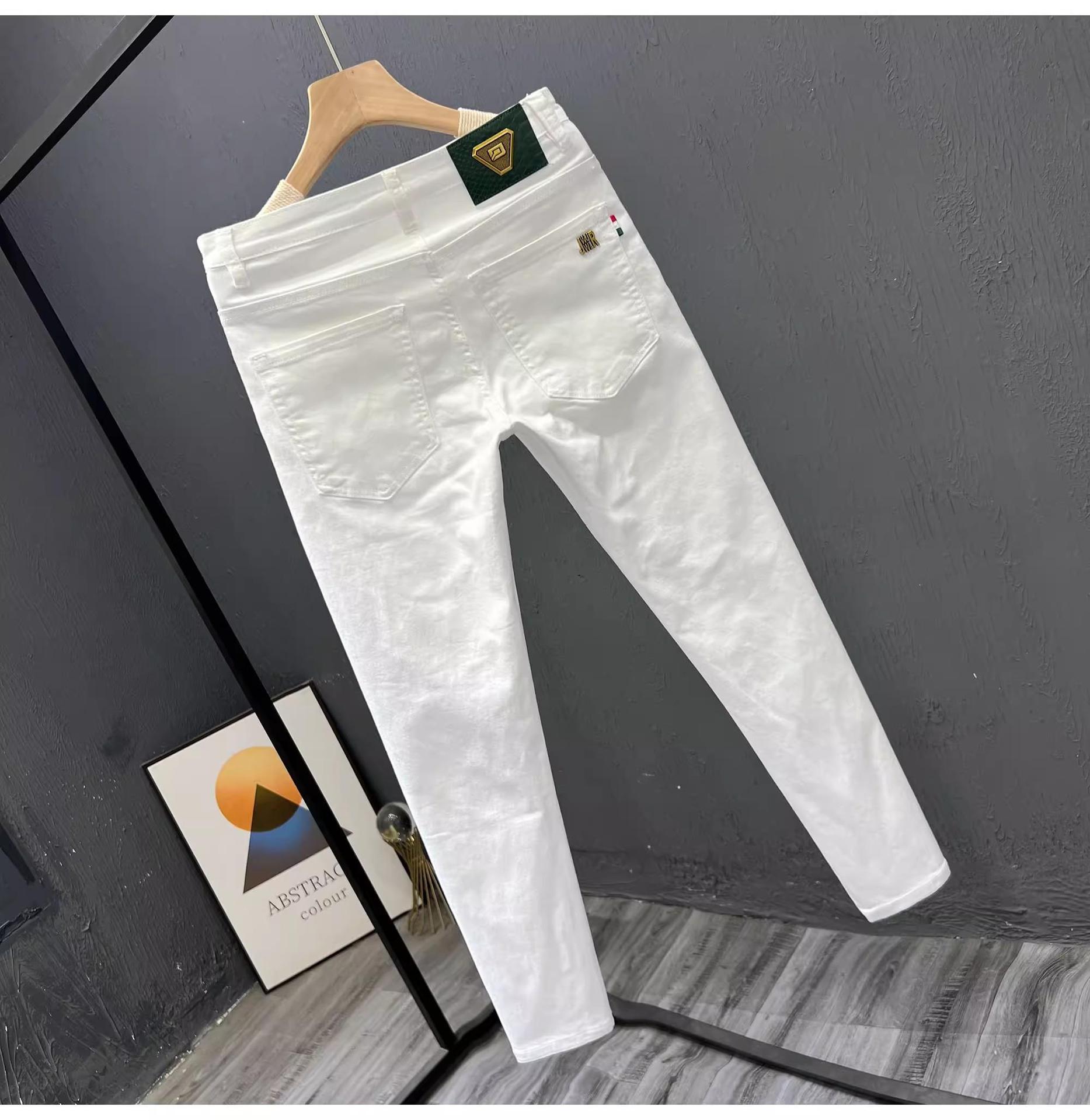 하이 엔드 남성 화이트 바지 간단한 여름 트렌디 남성 비즈니스 코튼 스키니 청바지 슬림 핏 발목 길이 바지스토어 가기