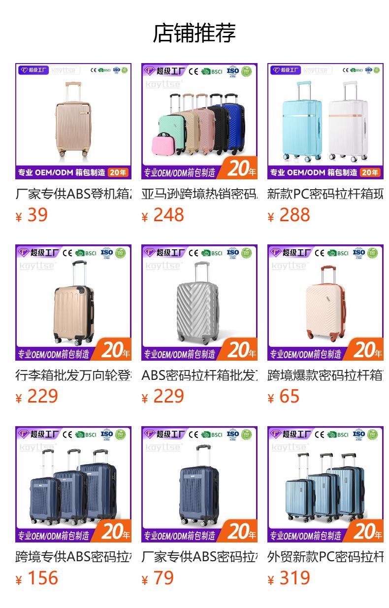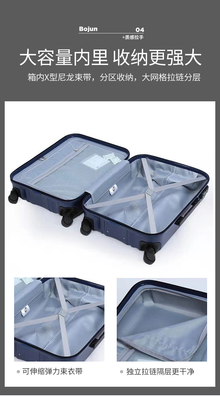 대외 무역 고급 맞춤형 20inch 지퍼 가방 ABS 3피스 대용량 트롤리 케이스 도난 방지 및 낙하 방지 가방스토어 가기