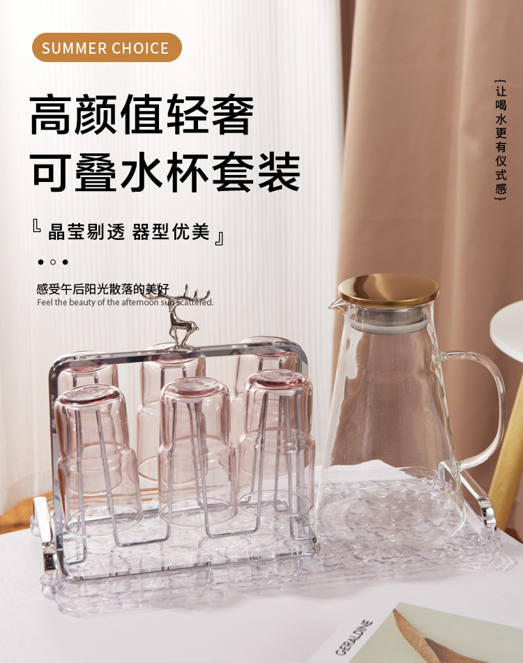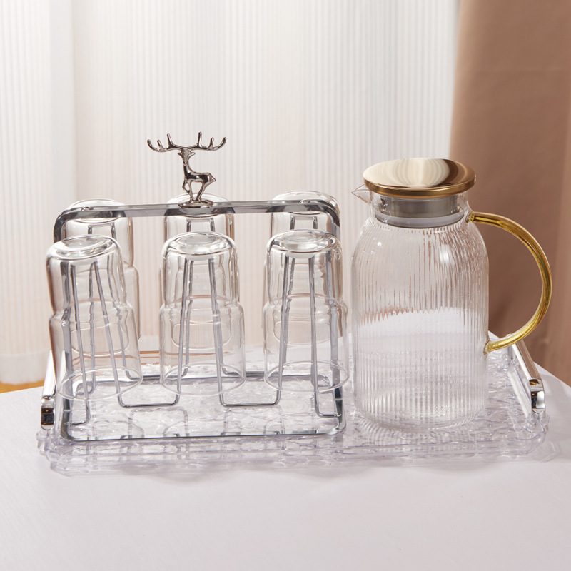 • 6 투명 컬러 320ml 주전자 트레이 사슴 머리 컵 홀더