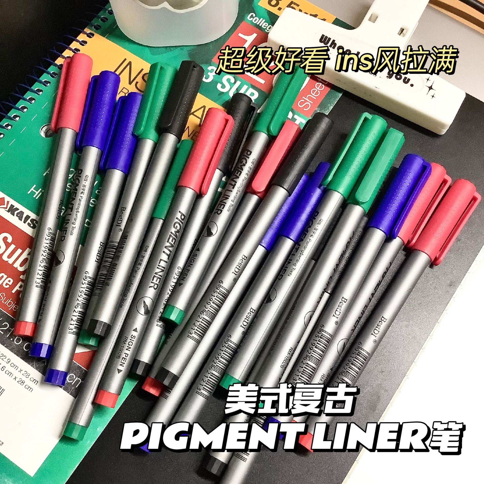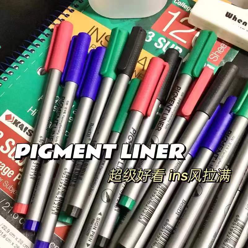 간단한 학생 브러쉬 0.5 빠른 건조 블랙 레드 블루 그린 거우 라인 펜 얇은 머리에 음성 제어 펜 몰입 바늘 펜스토어 가기