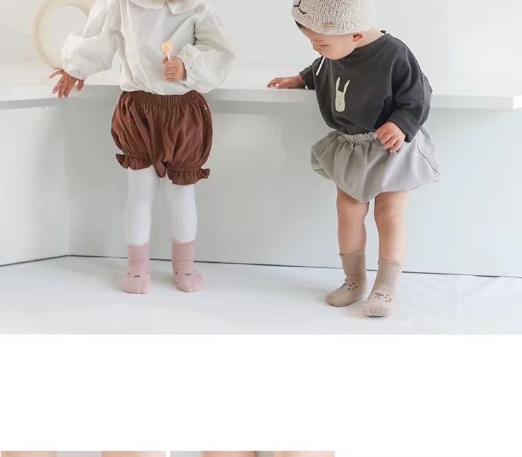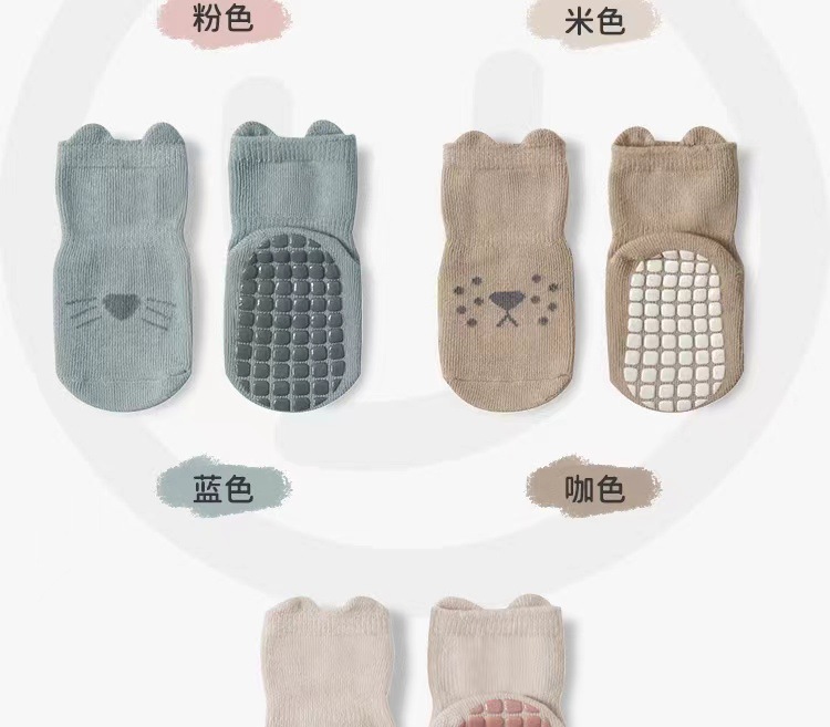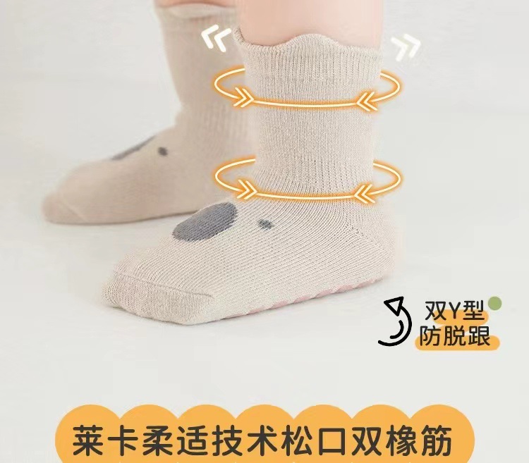 아기 바닥 양말 봄, 가을, 겨울 순면 유아 남녀 아동 걸음마 방지 미끄럼 방지 중간 길이 양말 두꺼운