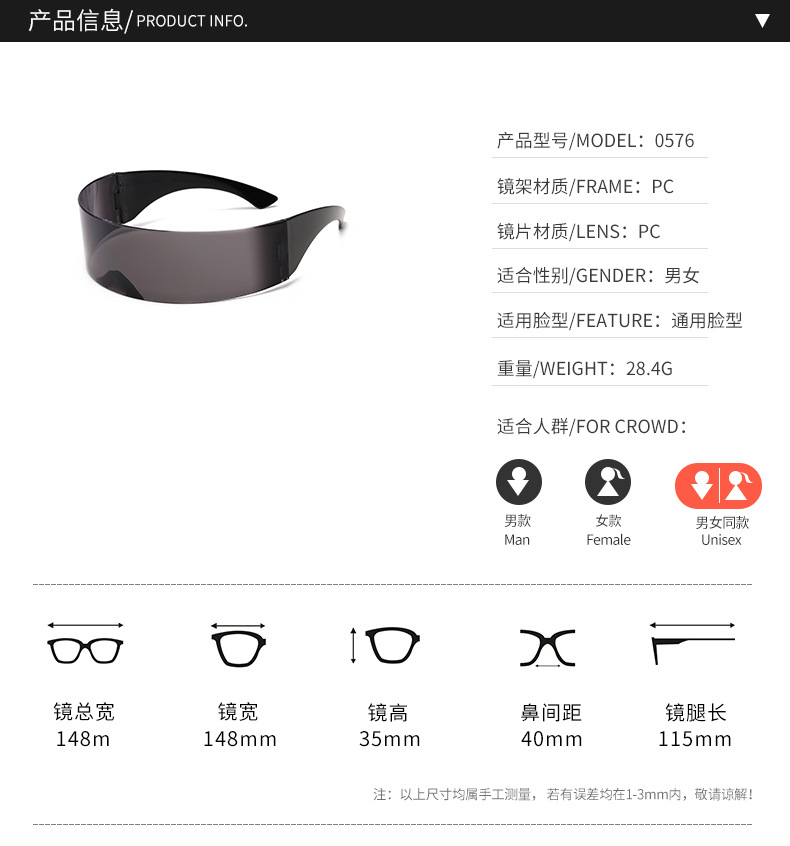사이버 펑크 파티 안경 공 원피스 기술 선글라스 미래 전사 안경 사진 스타일링 부분