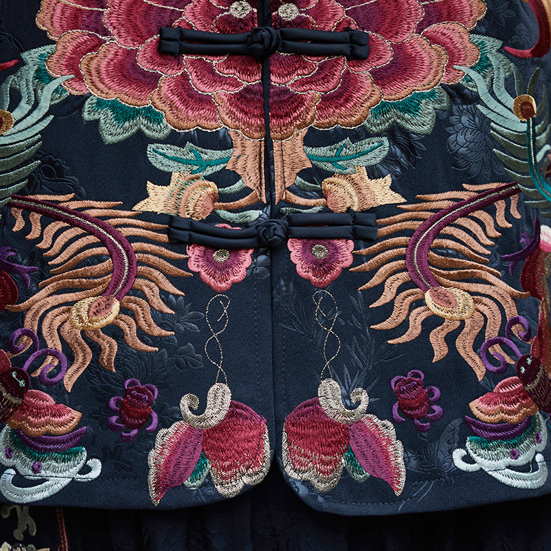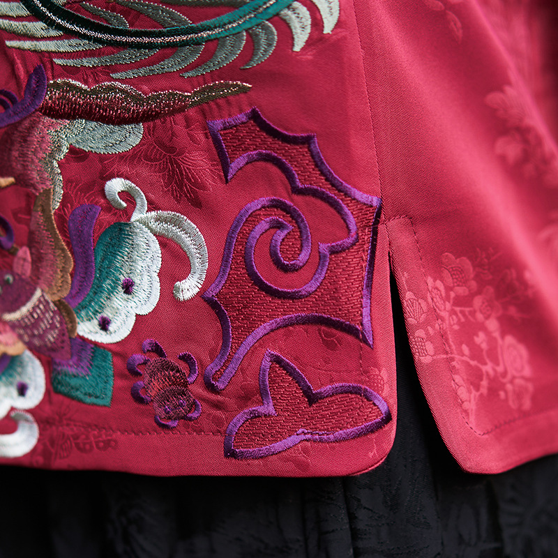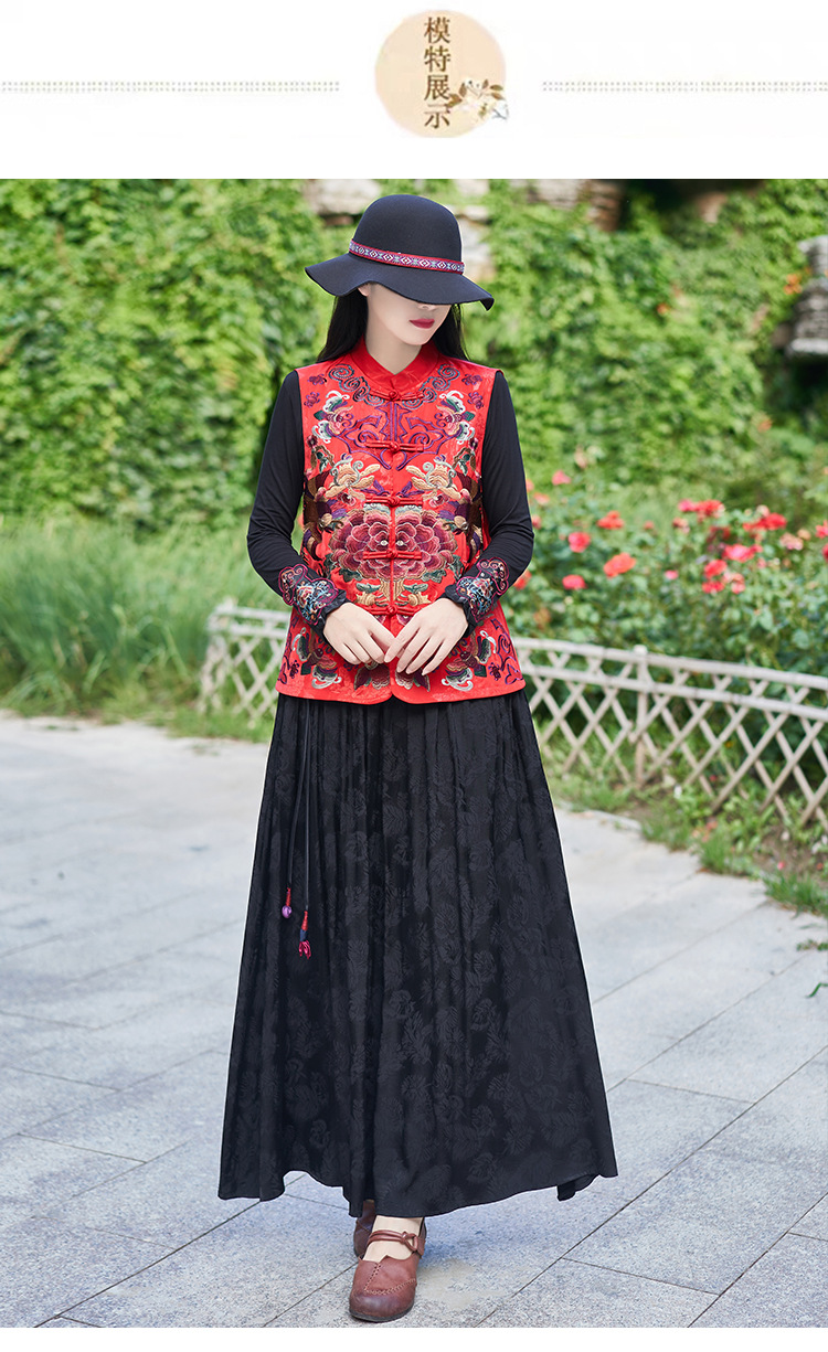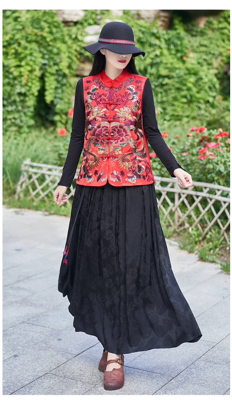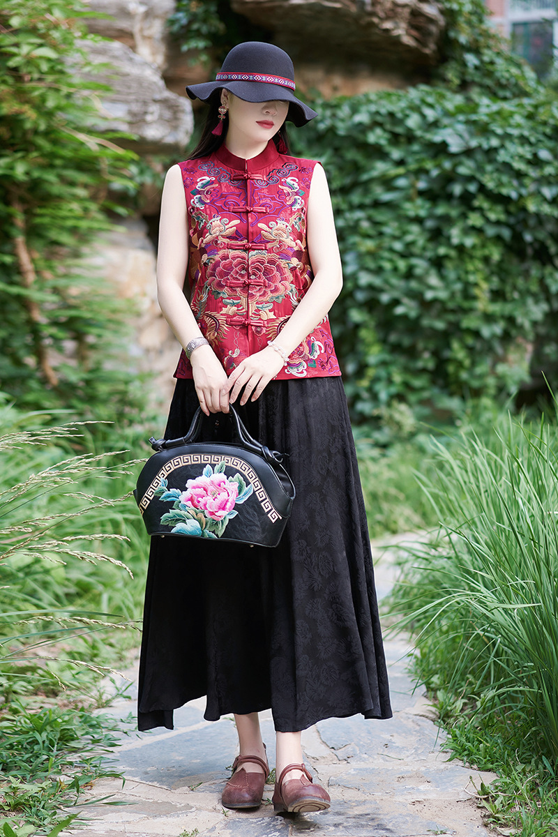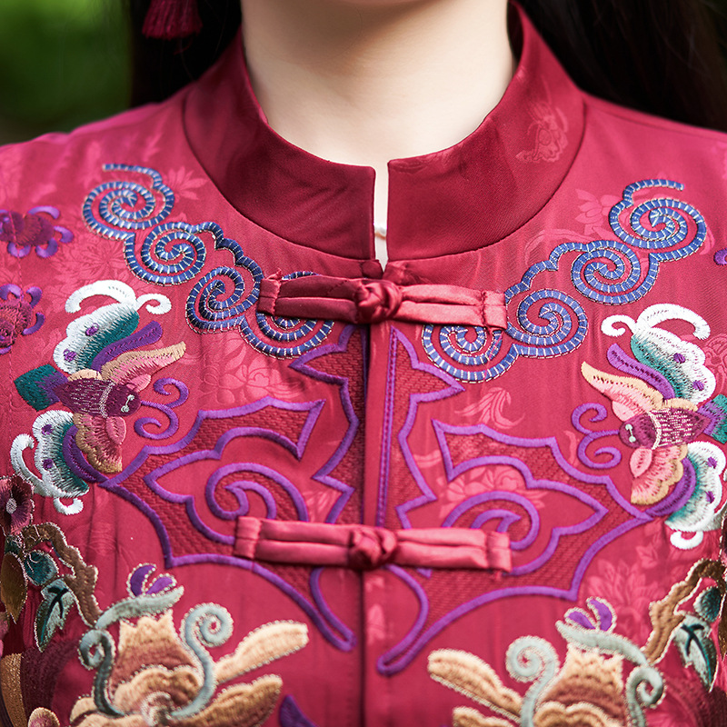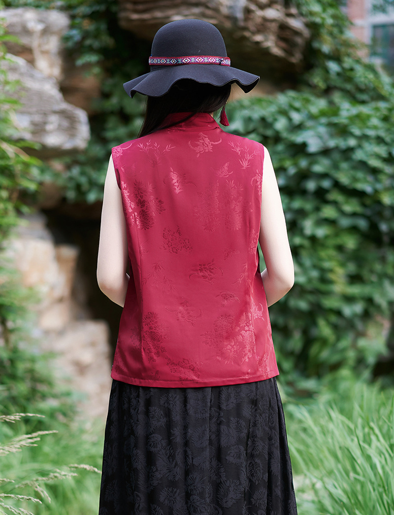 여름 중국 스타일 자수 조끼 자수 피닉스 버클 카디건 조끼 민족 스타일 여성 짧은 수직 칼라 허리 코트