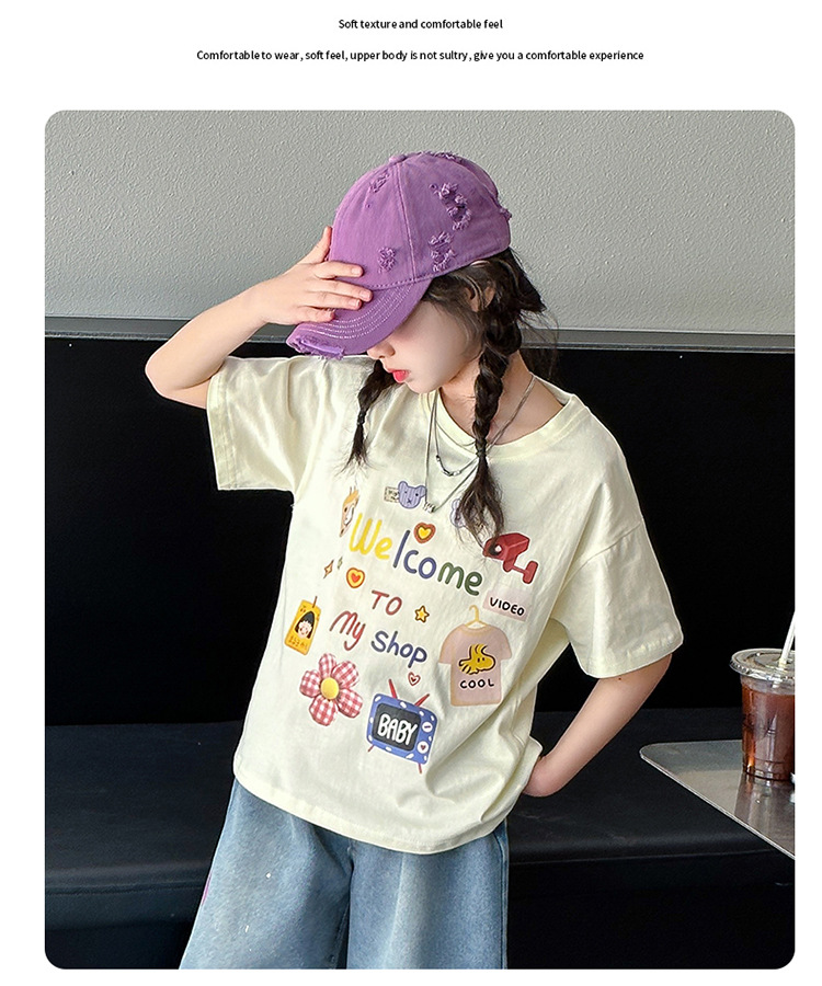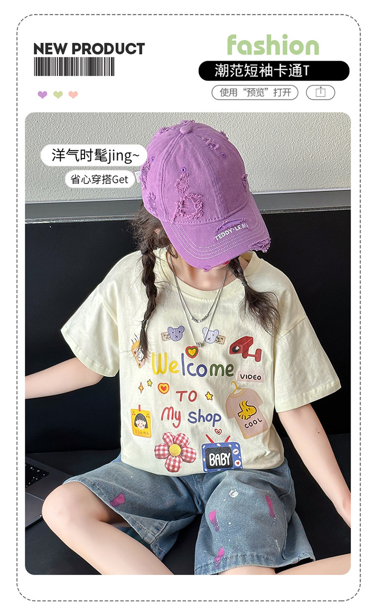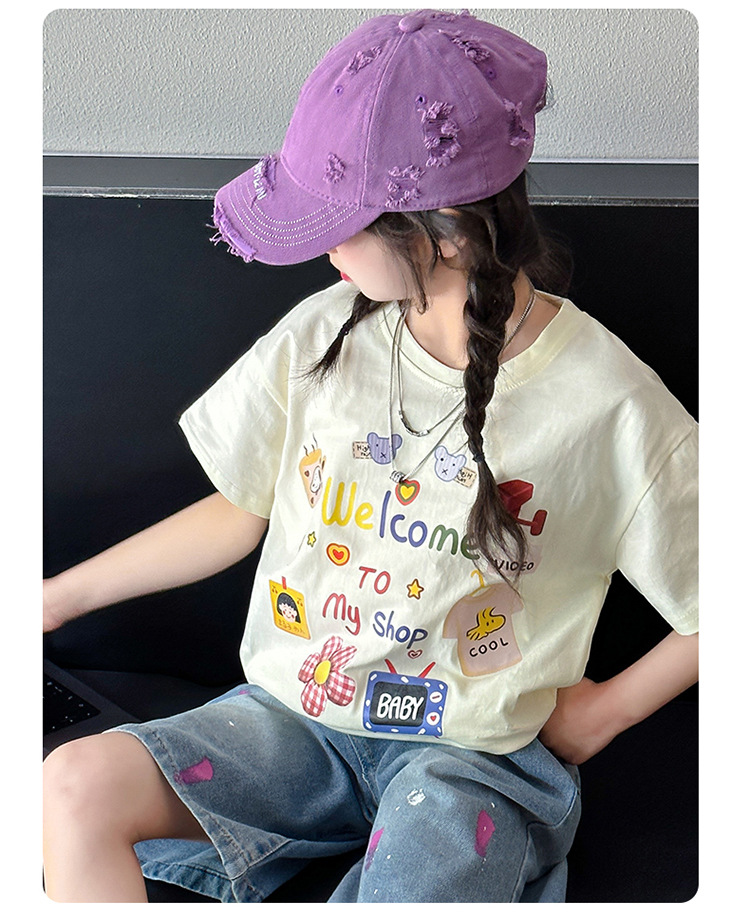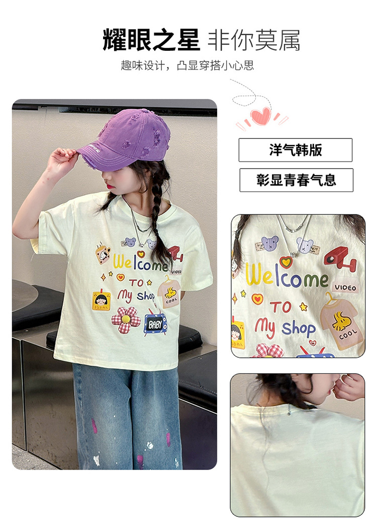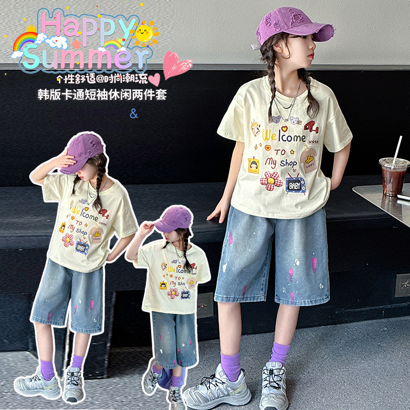 소녀의 여름 청바지 반바지 세트 새로운 도착 중간 바지 소녀 캐주얼 여름 티셔츠 투피스 세트스토어 가기