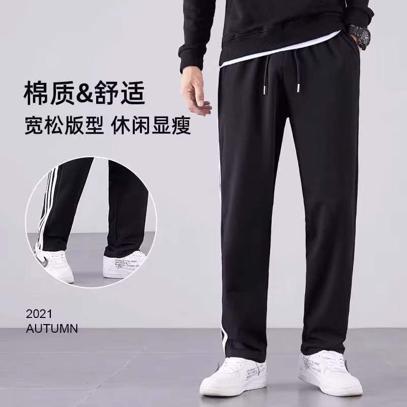 캐주얼 바지 남자 봄 3 바 스트레이트 다리 스포츠 바지 느슨한 스트레이트 긴 바지 유행 브랜드 스트라이프 스웨트 팬츠스토어 가기