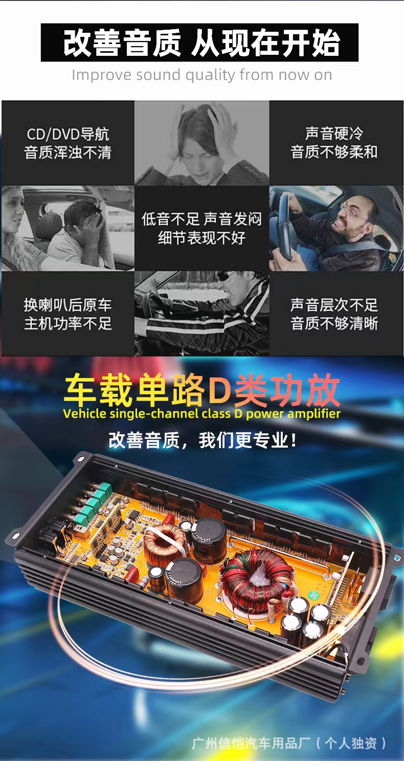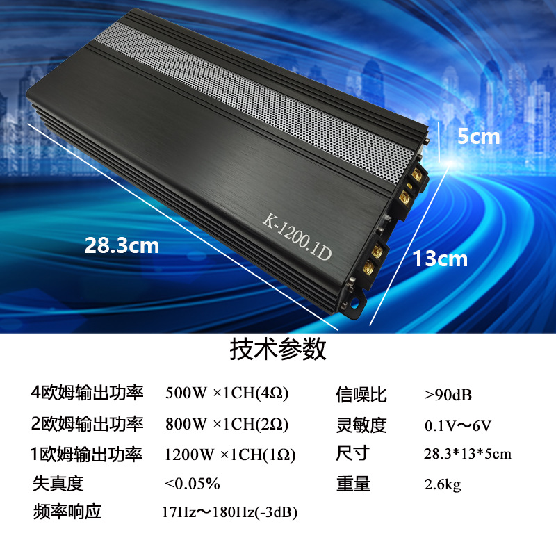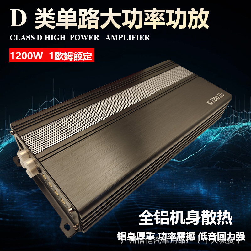 공장 직접 판매 자동차 오디오 K-1200 수정 12V 고출력 클래스 D 단일 채널 모노 1200W 디지털 자동차