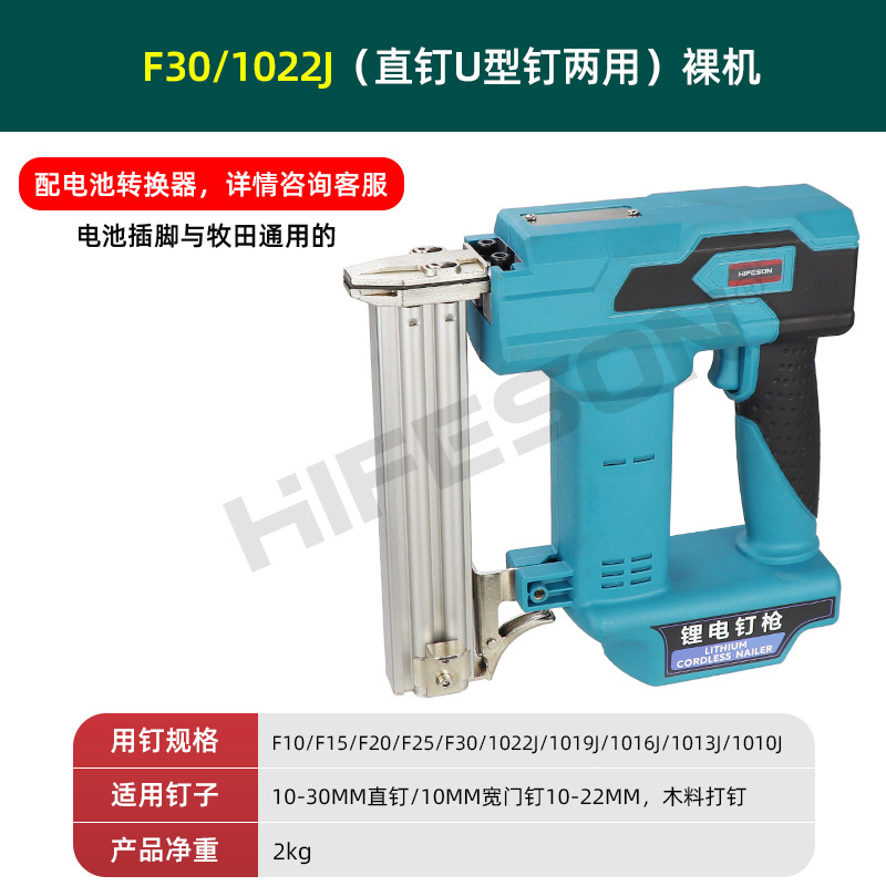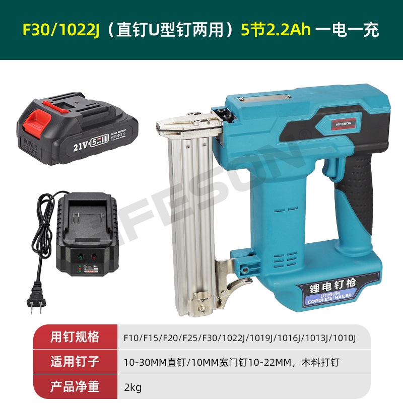 海飞鲨电动钉枪充电F30直钉枪422J码钉U型钉木工射钉无刷锂电钉枪