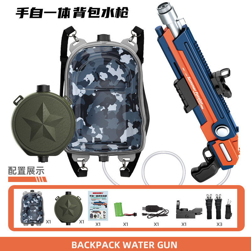 • 손으로 자기 통합 대용량 7500ML 더블 배낭 물 총-오렌지 블루 [전자 상거래 상자]
