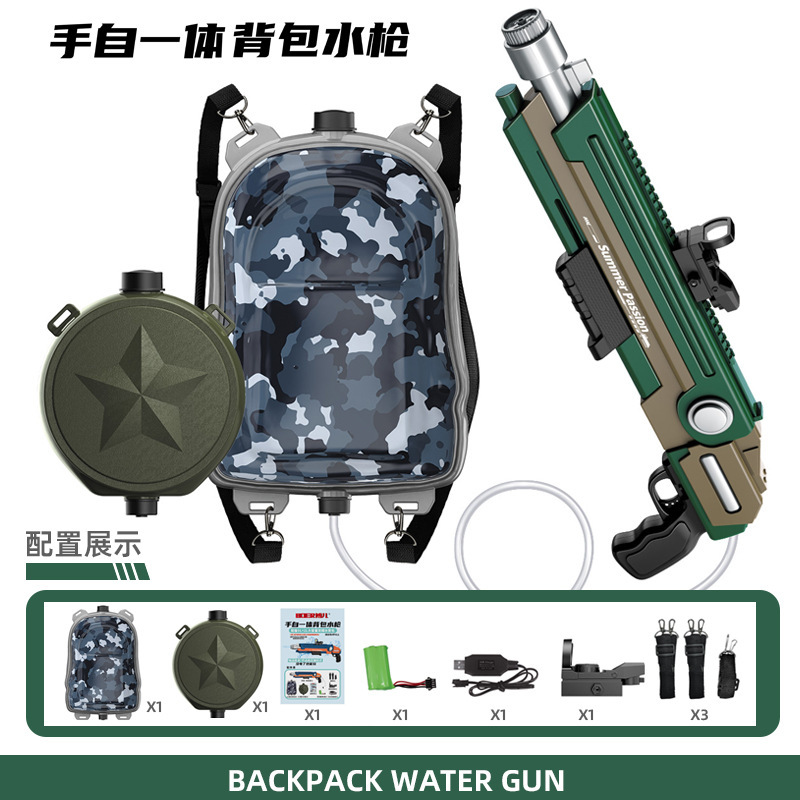 • 손으로 자기 통합 대용량 7500ML 더블 배낭 물 총 다크 그린 [전자 상거래 상자]