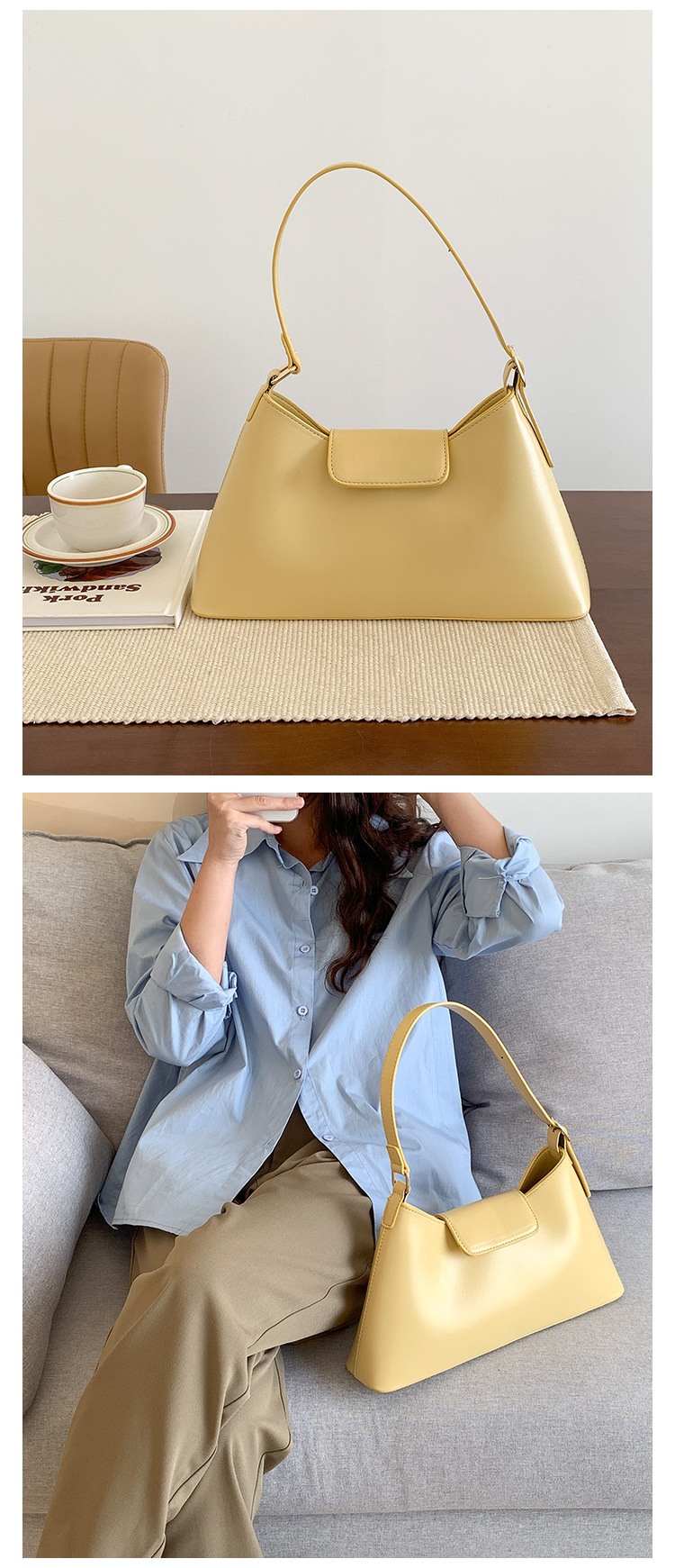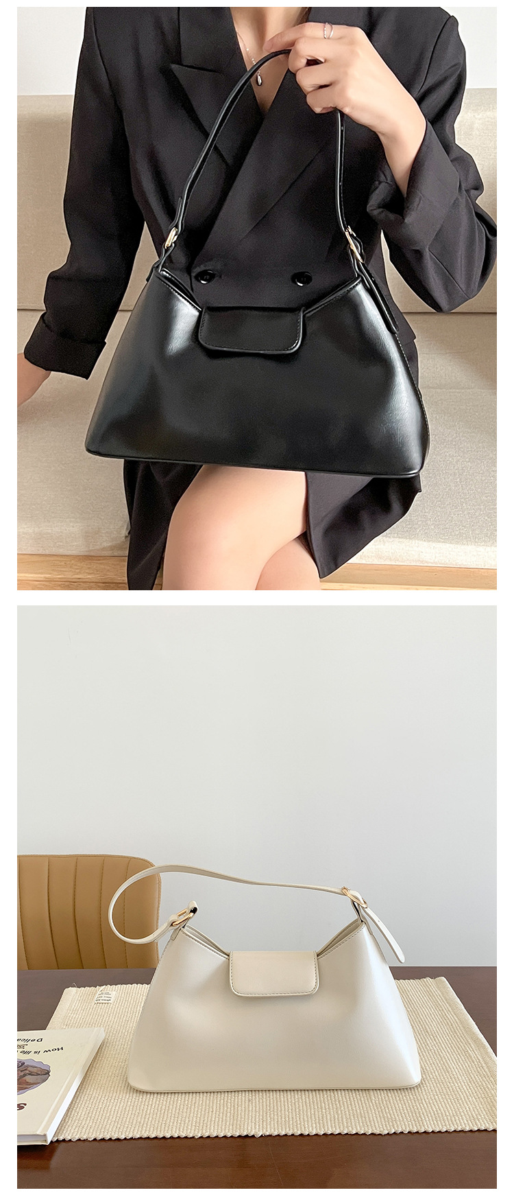 새로운 스타일의 여성용 겨드랑이 가방, 한국 스타일의 고급스러운 핸드백, 대용량 여성용 다용도 심플 출퇴근 가방