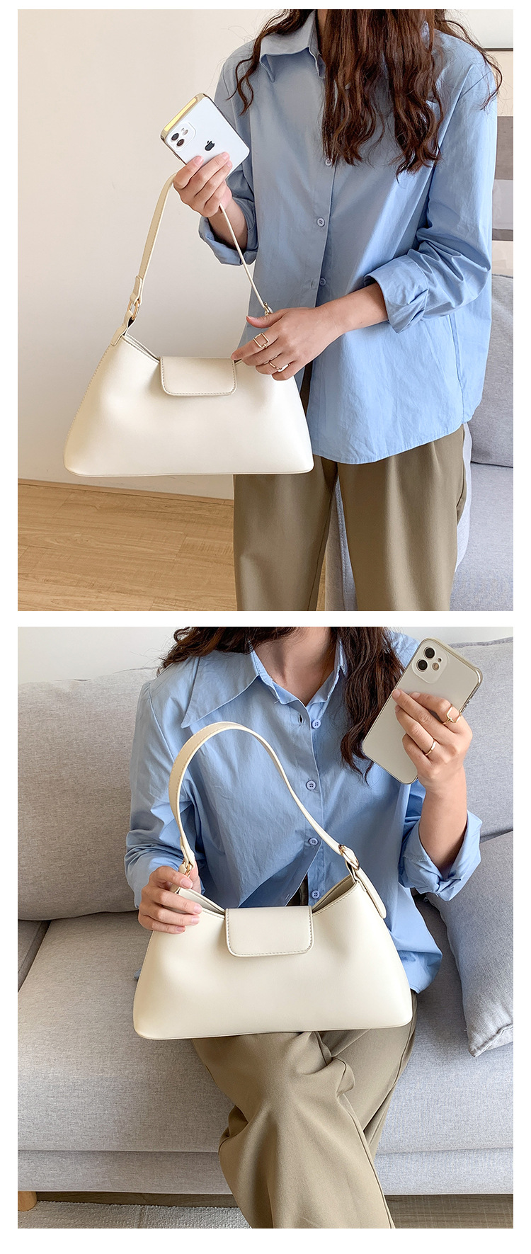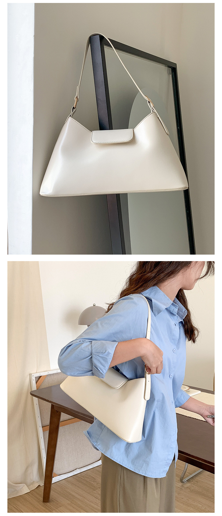 새로운 스타일의 여성용 겨드랑이 가방, 한국 스타일의 고급스러운 핸드백, 대용량 여성용 다용도 심플 출퇴근 가방스토어 가기