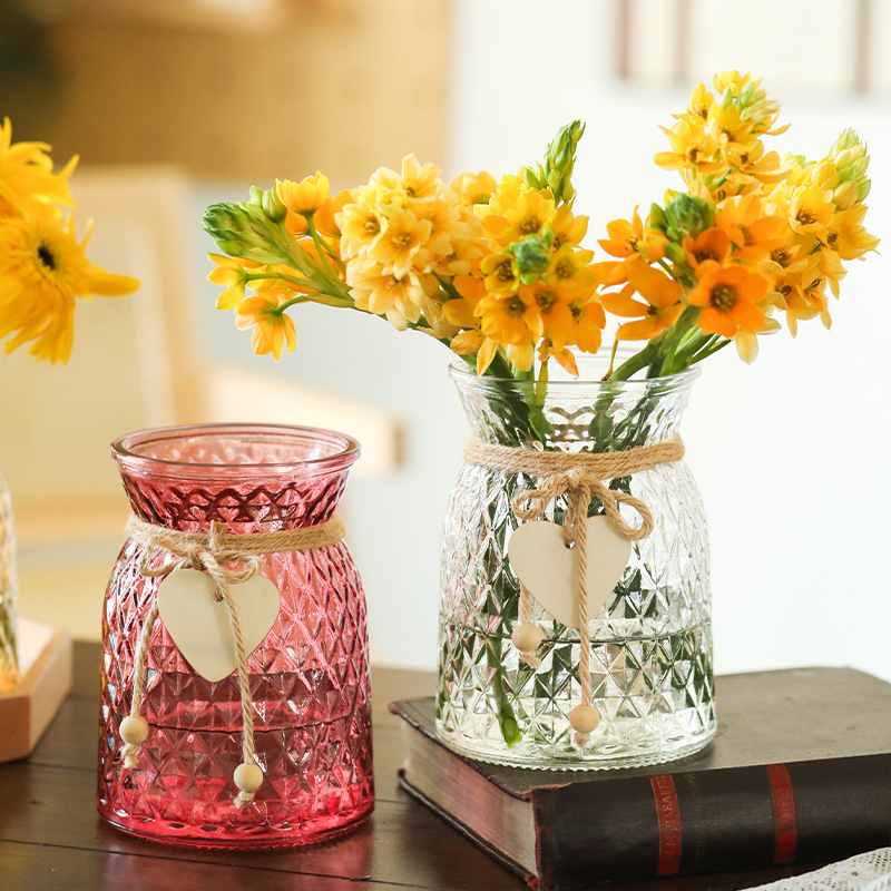 국경 허리 유리 꽃병 데스크탑 수경 꽃 꽃꽂이 컨테이너 거실 데스크탑 장식품 대마 로프 도매스토어 가기
