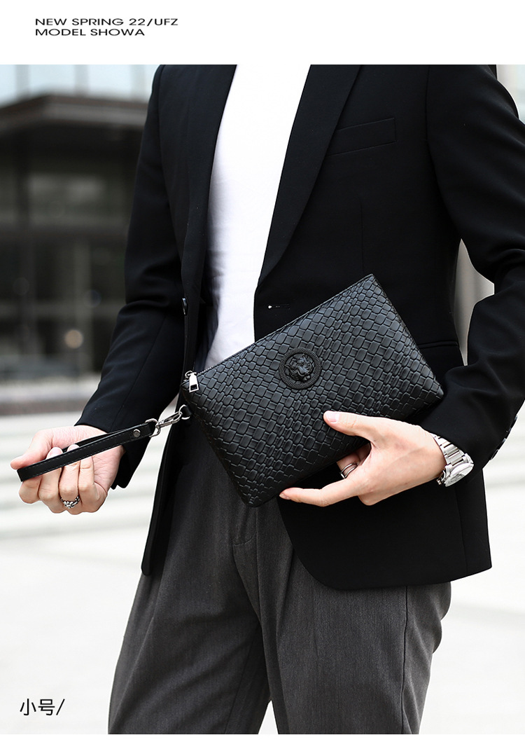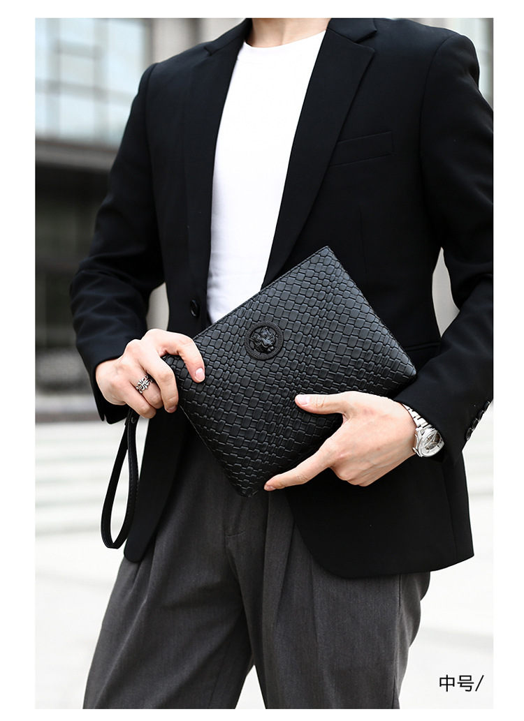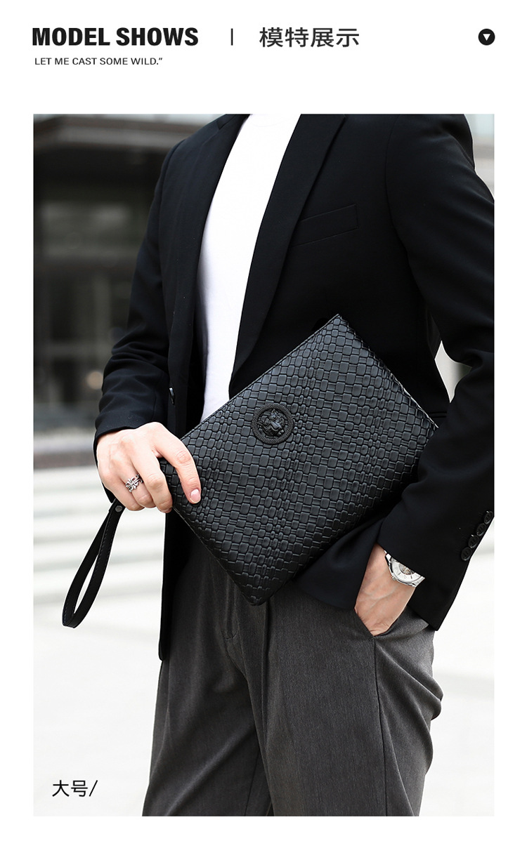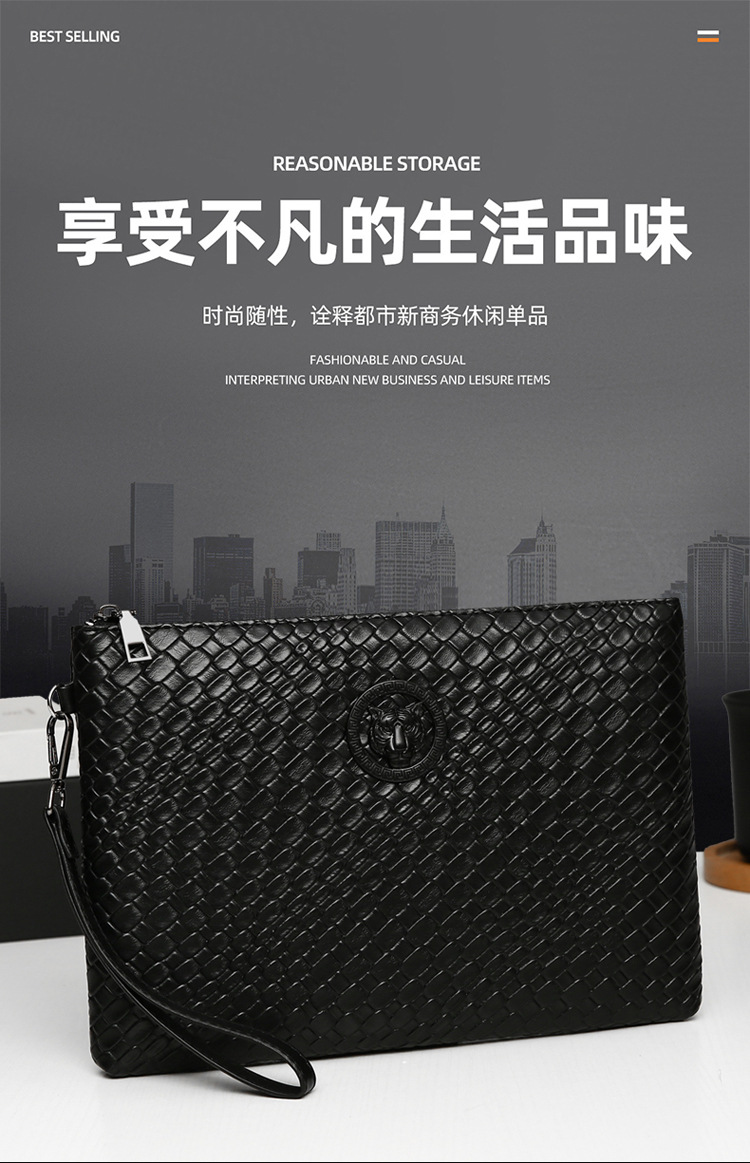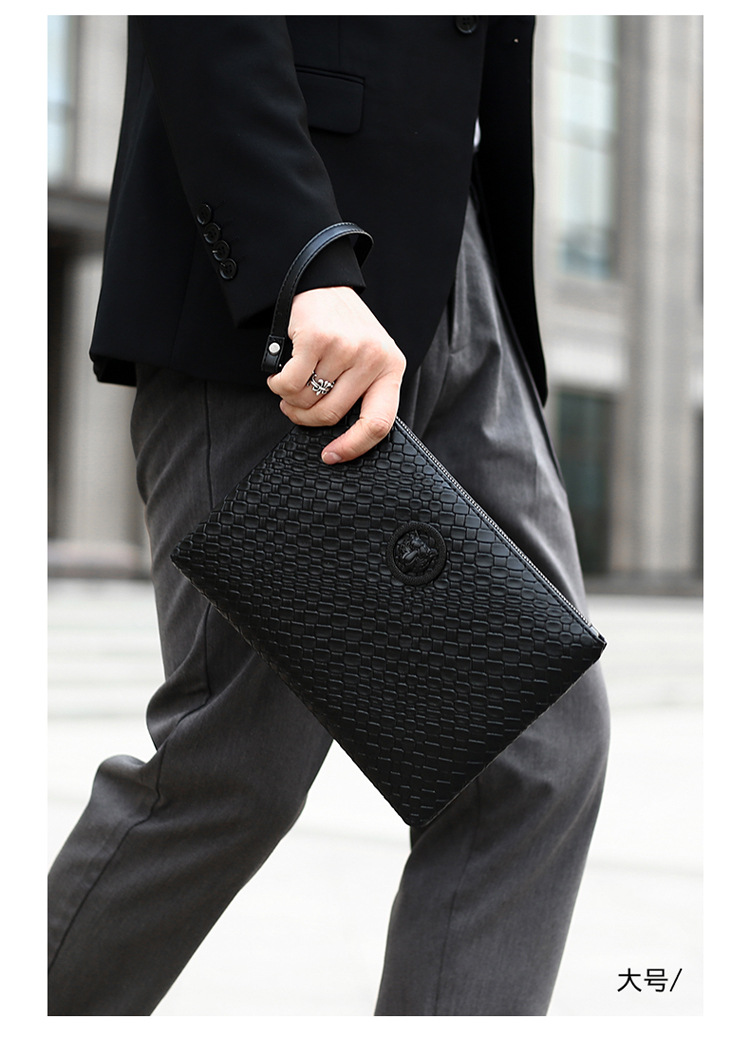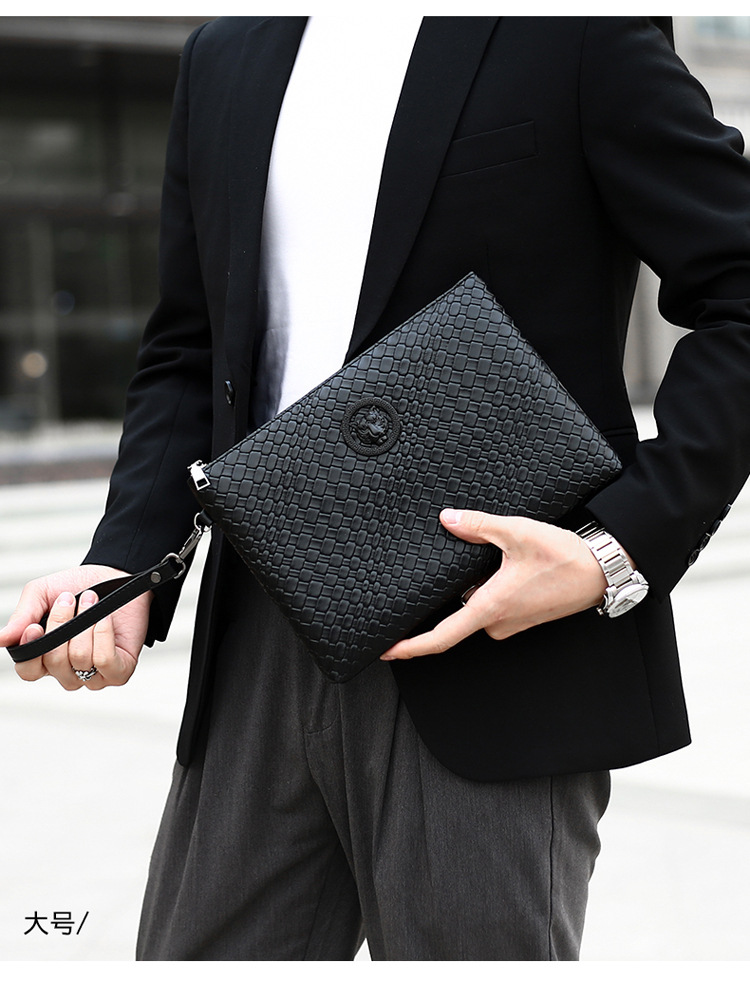 새로운 남성 짠 클러치 대용량 소프트 가죽 핸드백 봉투 유행 비즈니스 남성 가방 라이브 공급스토어 가기