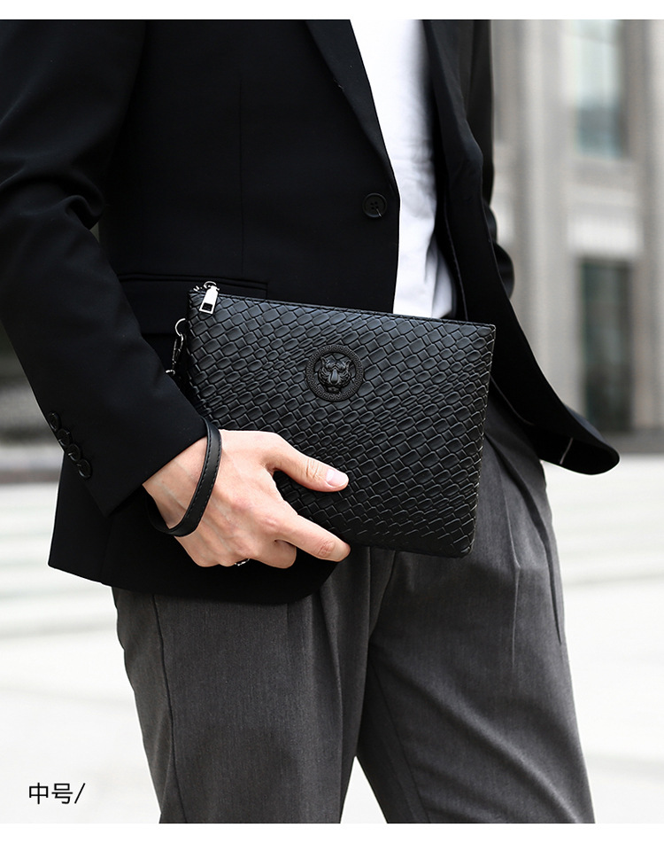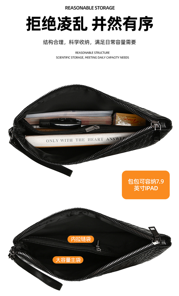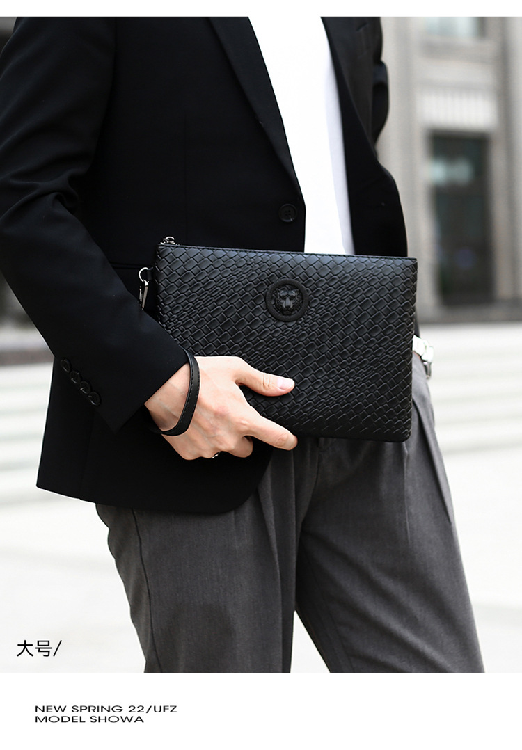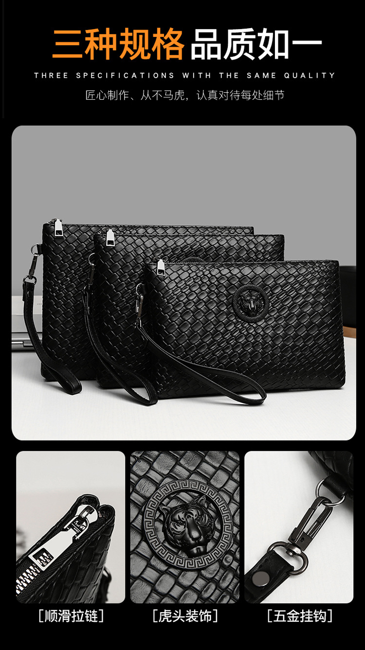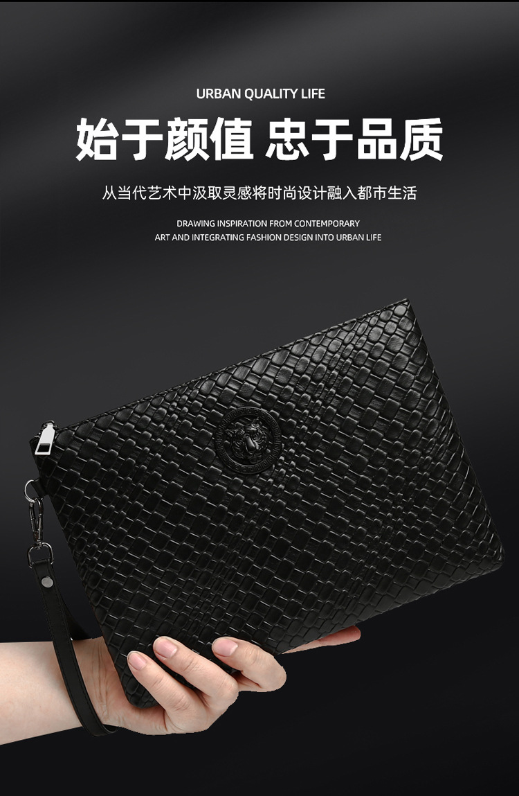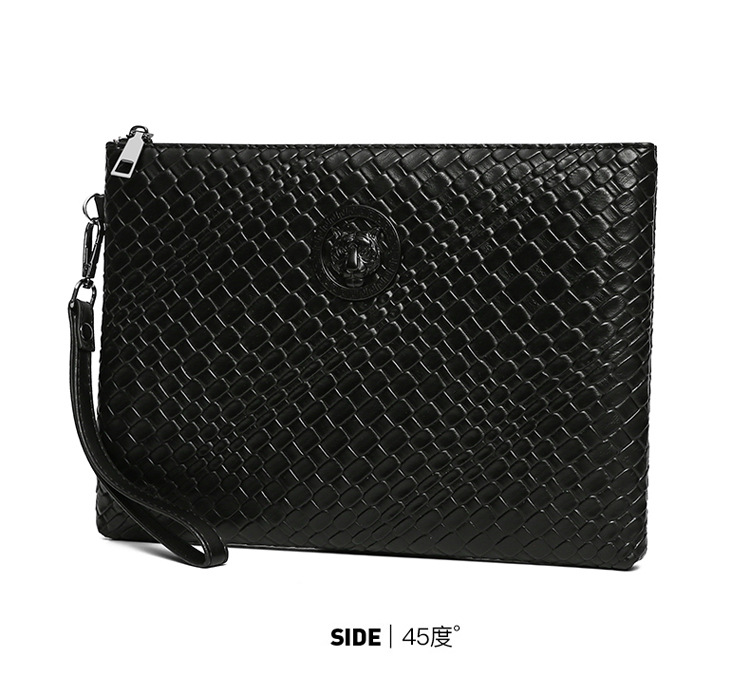 새로운 남성 짠 클러치 대용량 소프트 가죽 핸드백 봉투 유행 비즈니스 남성 가방 라이브 공급스토어 가기