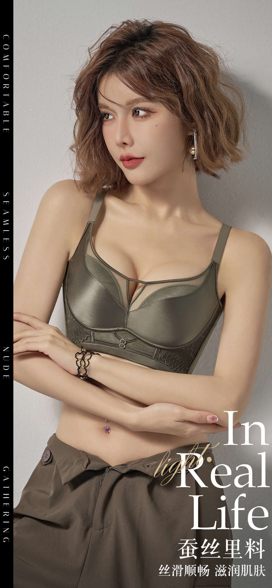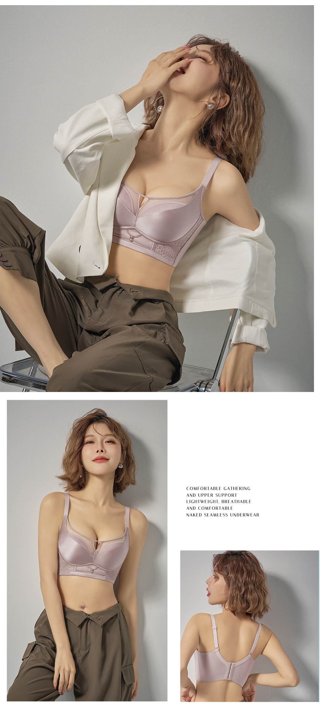 8902 조정 가능한 편안한 브래지어 비자 성 중간 얇은 뽕나무 실크 섹시한 풀 컵 작은 가슴 무선 라이트 럭셔리 속옷